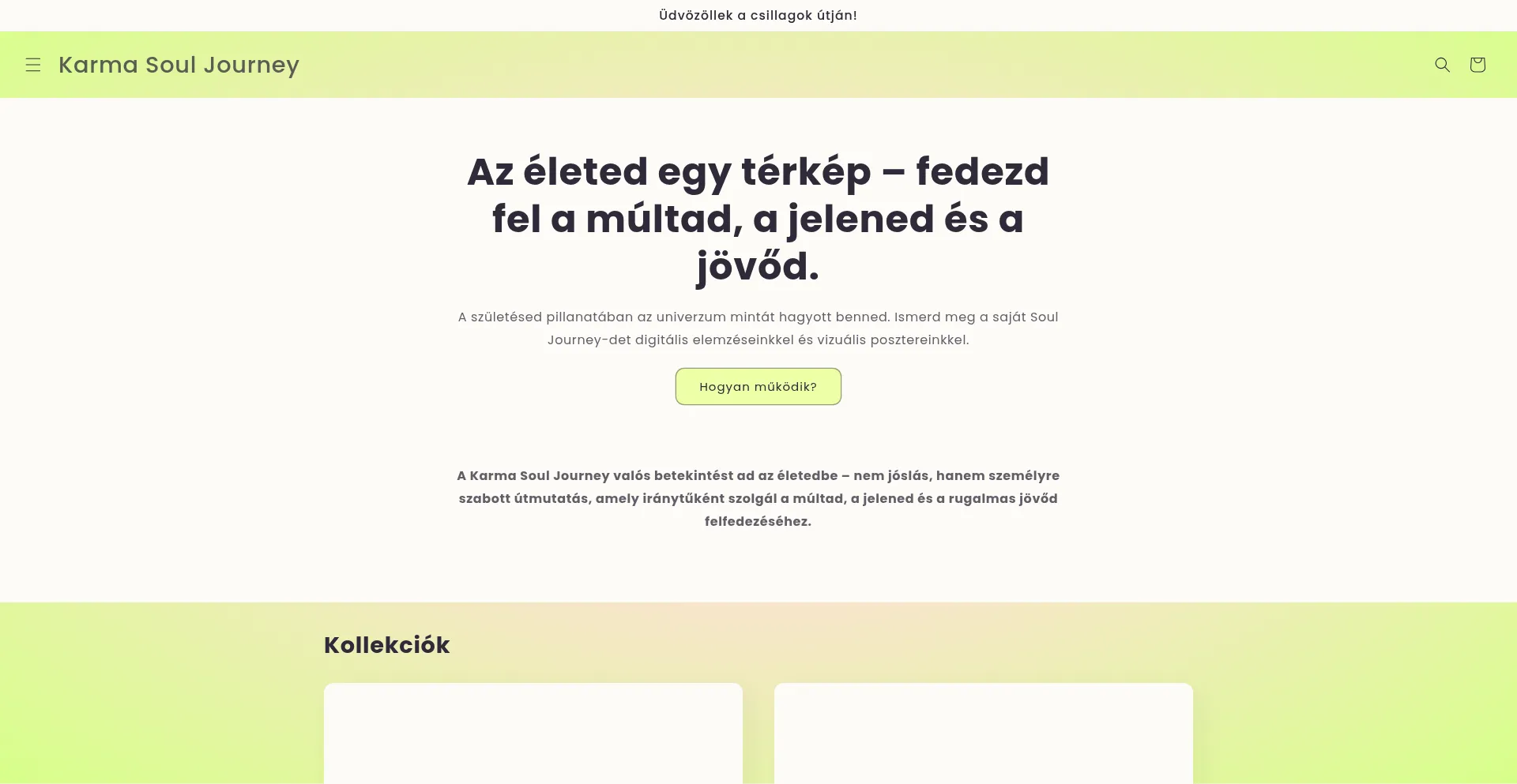 Fedezd fel karmádat és életutad a Karma Soul Journey segítségével! Személyre szabott születési elemzések, vizuális poszterek és útmutatók, hogy jobban megértsd ö...