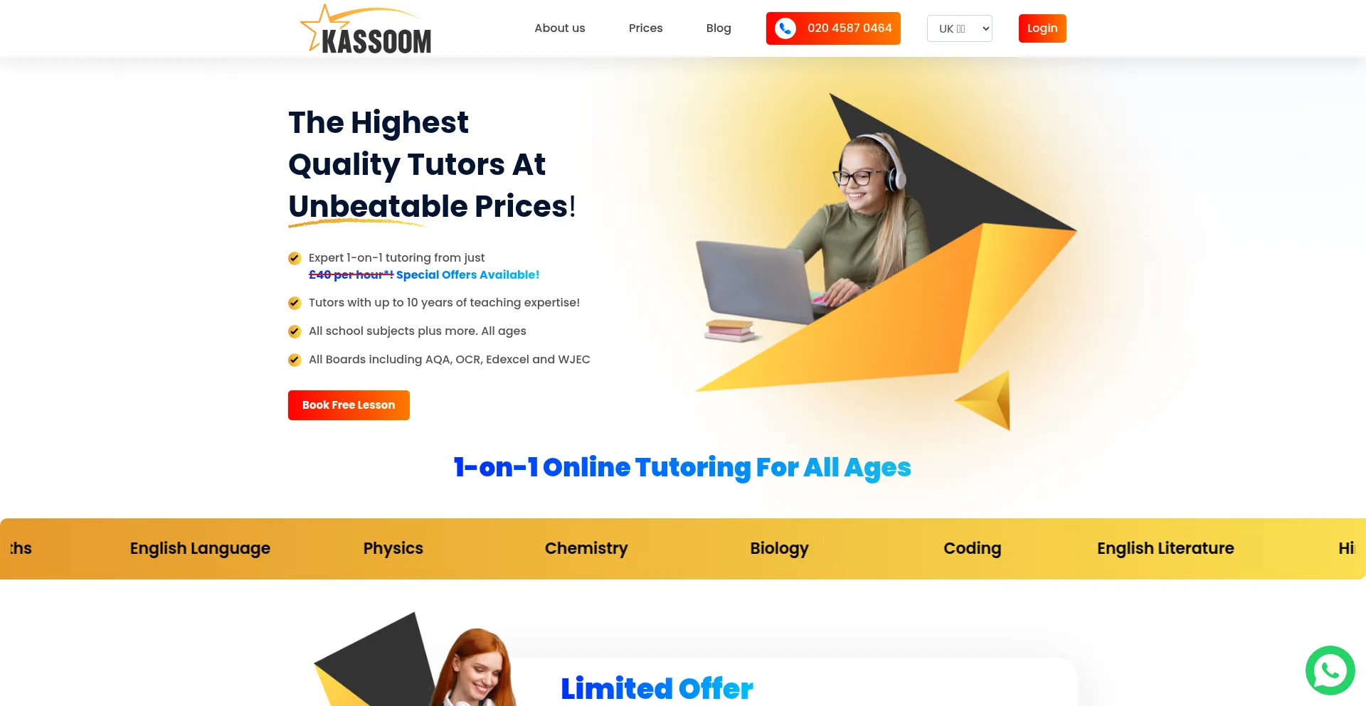 Kassoom Affordable Online Tutoring - One-To-One Tutoring For Ages 7-18