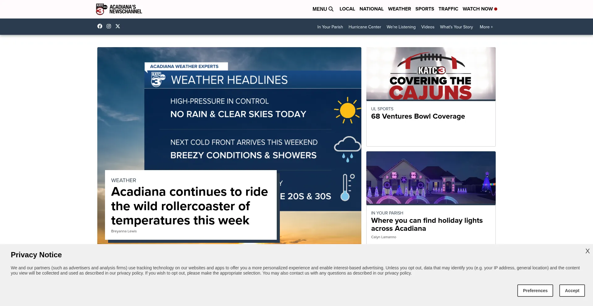 网站上存在社交媒体链接表明 katc.com 在社交媒体上维护官方账户,这是可信度和参与度的积极信号。