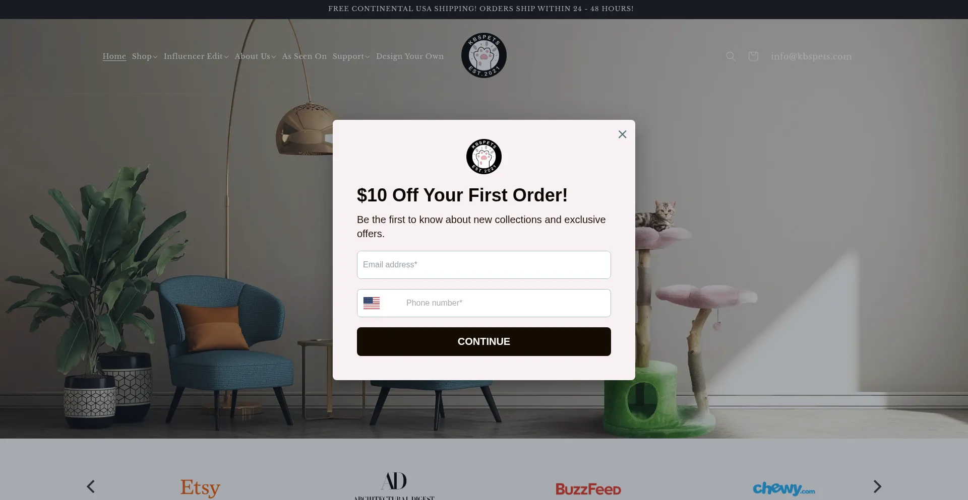 该网站实现数据收集表单,请求个人信息,包括姓名、电子邮件地址、电话号码或其他敏感详细信息。用户应验证 kbspets.com 的合法性并在提交个人数据前查看隐私政策。