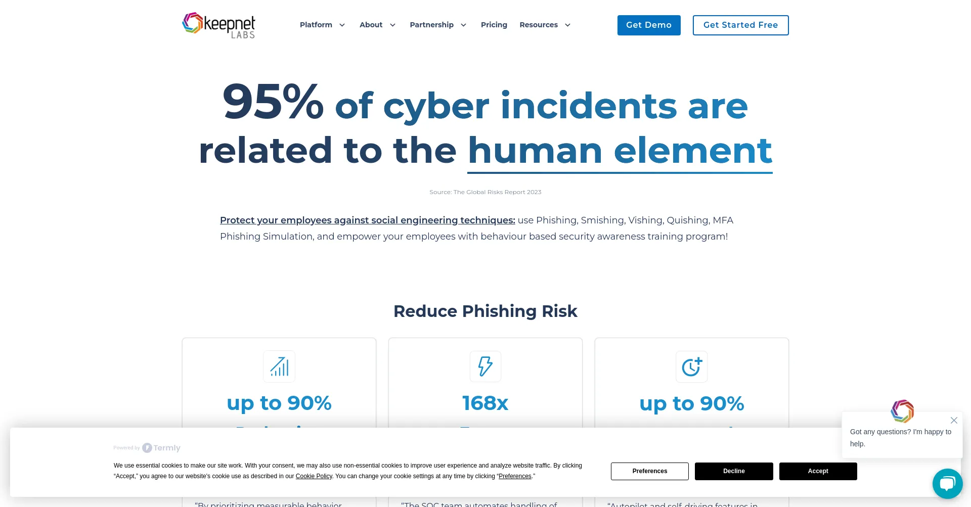 Keepnet is an xHRM provider with AI-driven phishing simulations, adaptive security awareness training, and phishing response to eliminate human-driven threats.
