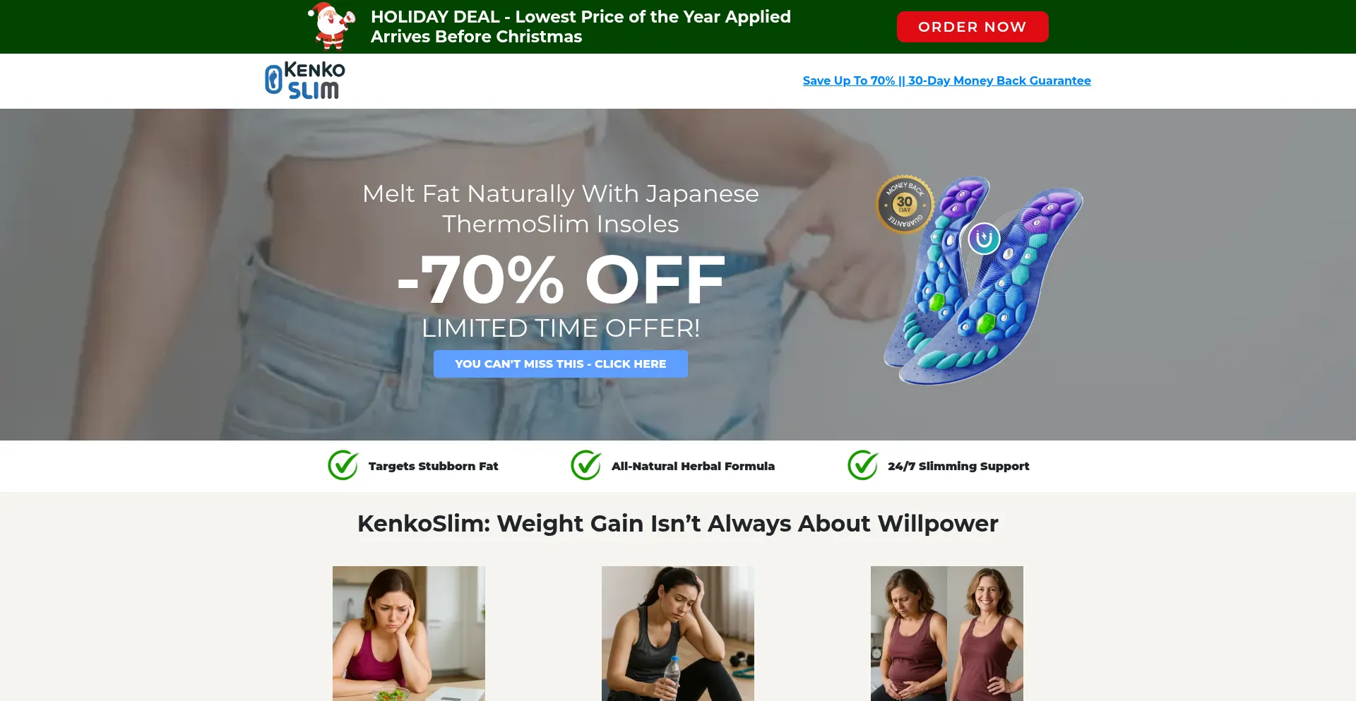 KenkoSlim targets belly, arm, and thigh fat using herbal ThermoSlim technology. Get yours with 70% off!