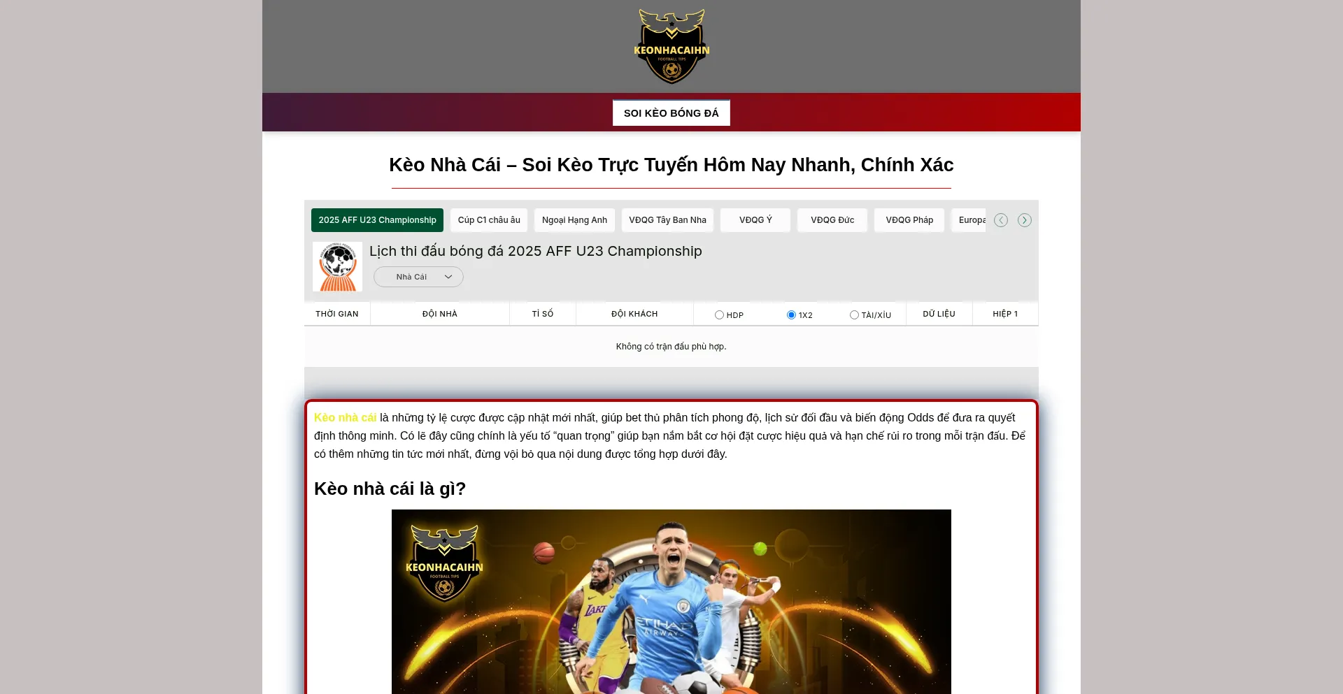 Kèo Nhà Cái - Tỷ Lệ Kèo Bóng Đá Cập Nhật 24h Mới Nhất
