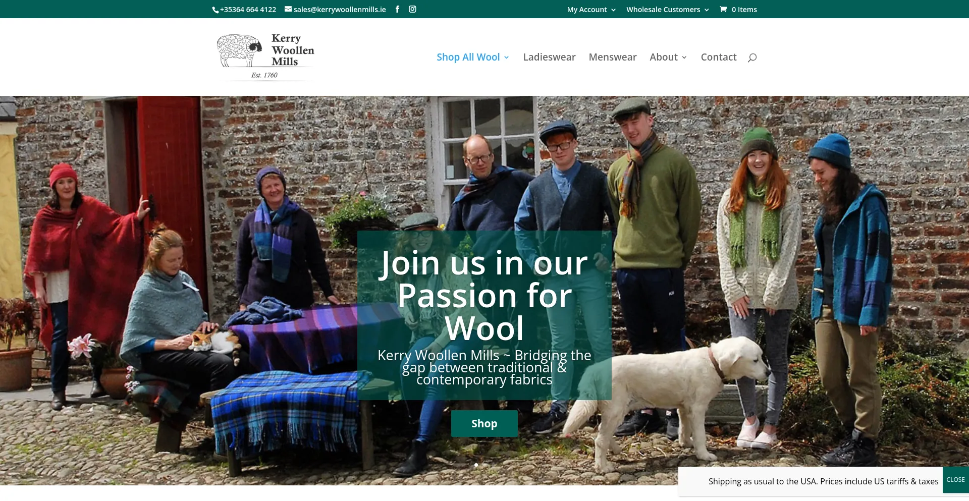 Kerry Woollen Mills manufacture and retail woolen yarns, Aran sweaters, blankets, throws, sweaters and tweed at our 300 year old mill in Kerry, Ireland.