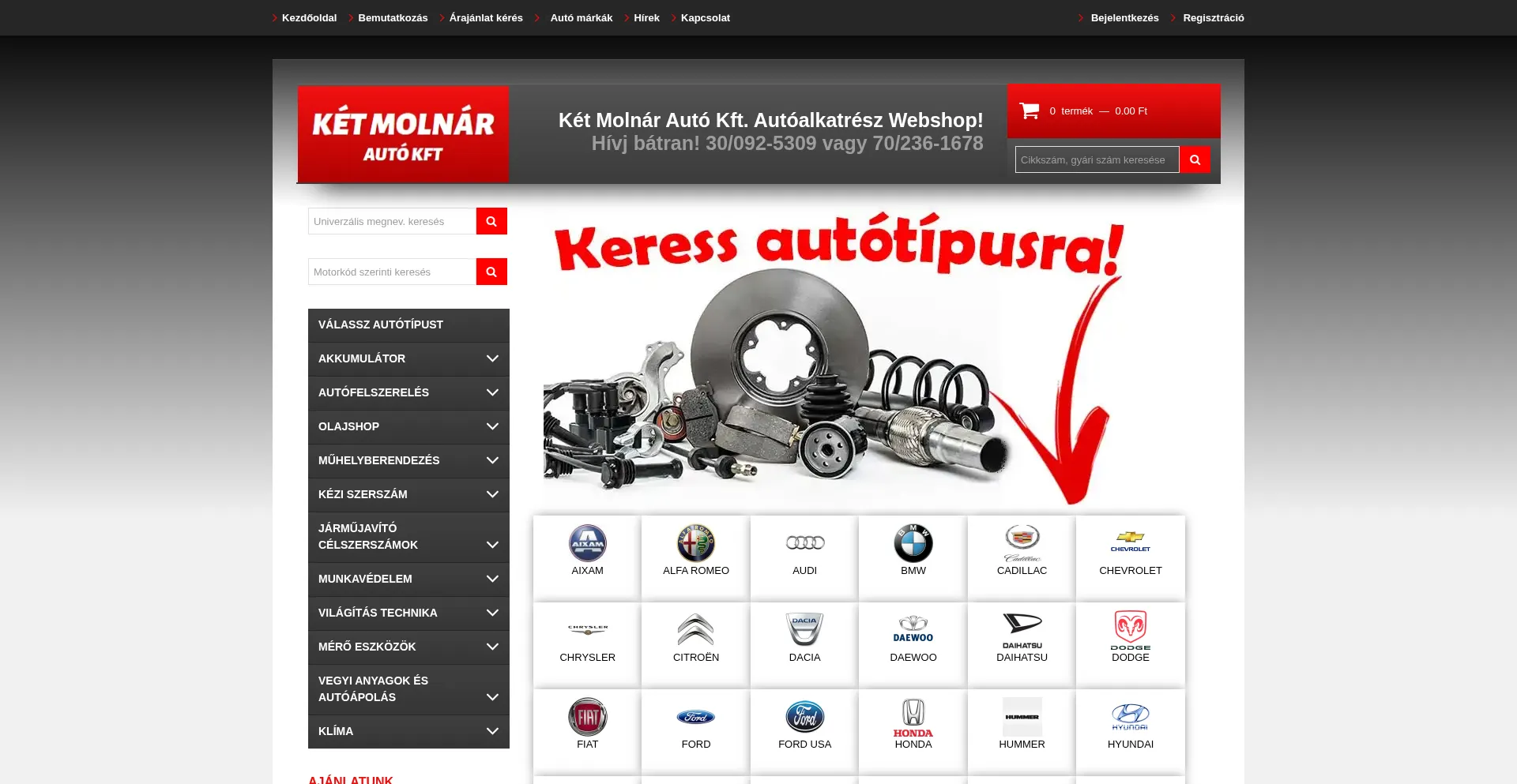 Alkatrész webáruház, autóalkatrész széles választékban, autósbolt a weben. Autóalkatrész, kenőanyag, akkumulátor forgalmazó.