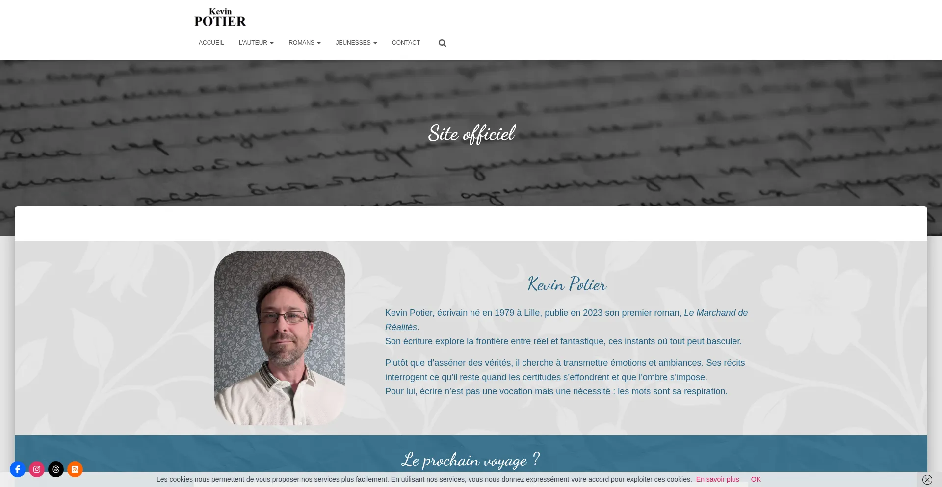 bienvenue sur le site officiel de Kevin Potier, écrivain et auteur, avec ses ouvrages, actualités et univers littéraire.