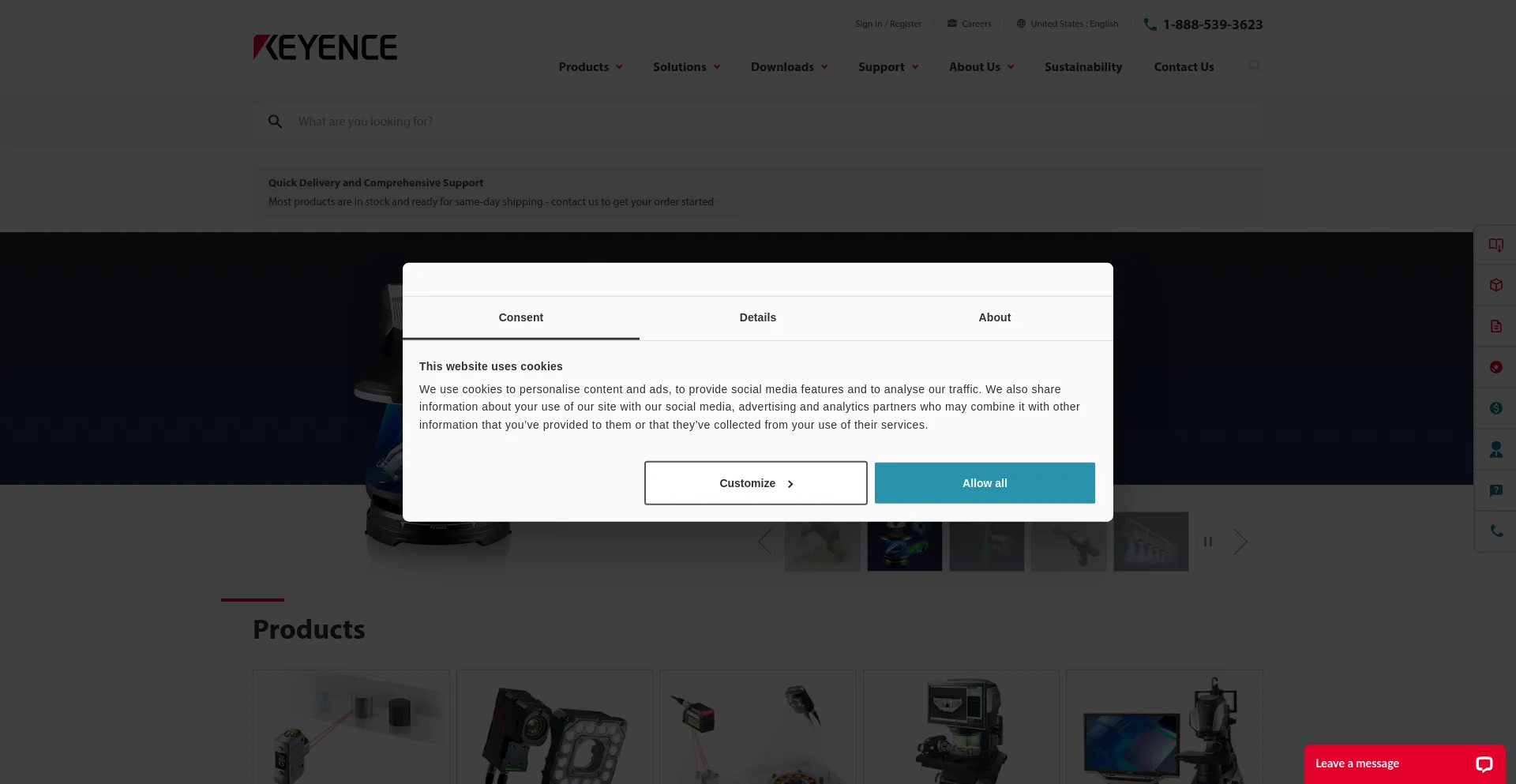 该网站实现符合GDPR或CCPA等隐私法规的cookie同意机制。这表明 keyence.com 遵守数据保护标准并为用户提供对个人数据收集实践的控制。