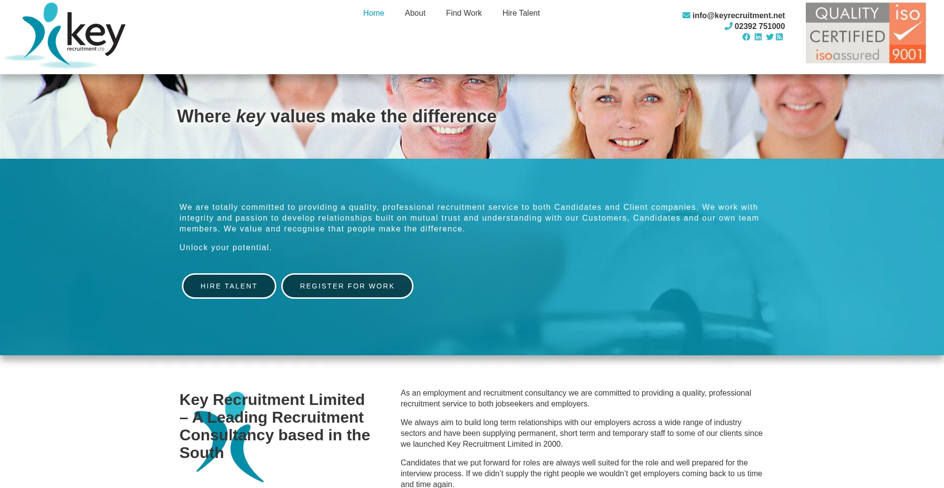 网站上存在社交媒体链接表明 keyrecruitment.net 在社交媒体上维护官方账户,这是可信度和参与度的积极信号。