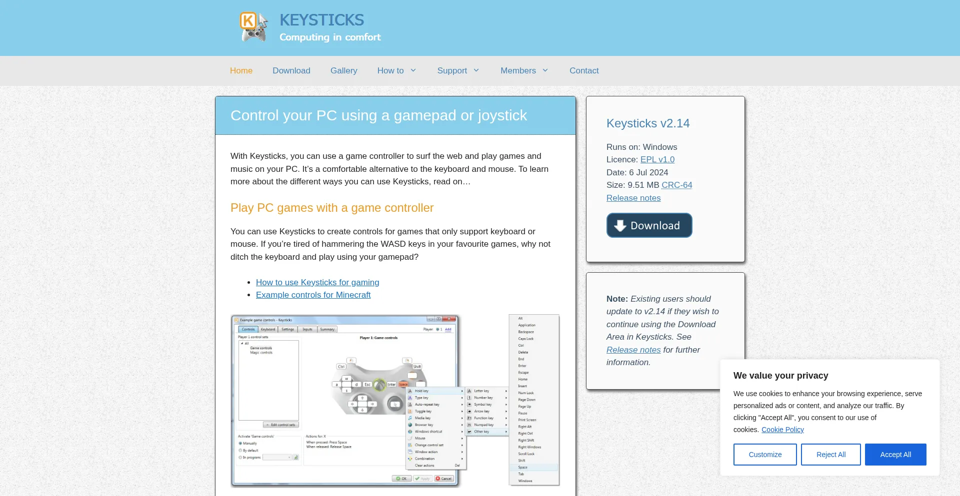 With Keysticks, you can use a game controller to surf the web and play games and music on your PC. It's a comfortable alternative to the keyboard and mouse.