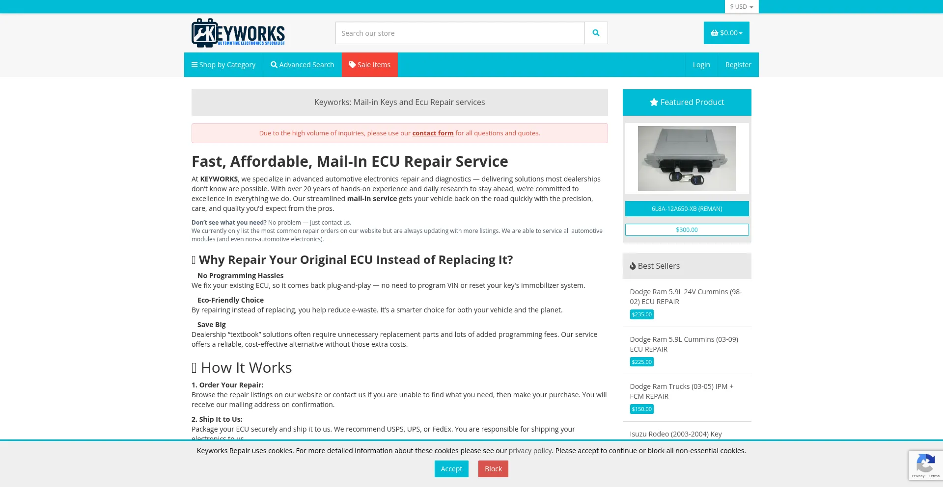 Keyworks specializes in the repair of automotive electronic control modules and programming transponder keys for most all immobilizer systems.