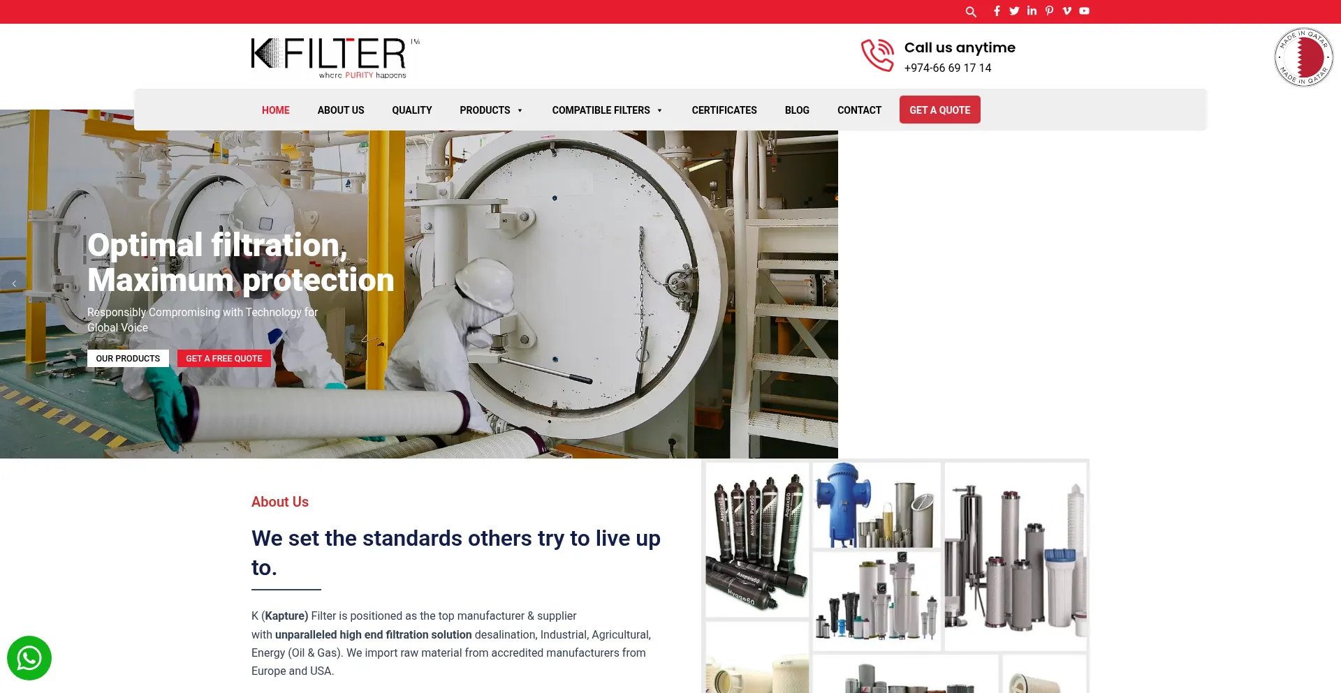 Kfilter is positioned as the top manufacturer & Supplier of Process and Industrial filter cartridge elements & Filtration equipment in Qatar.