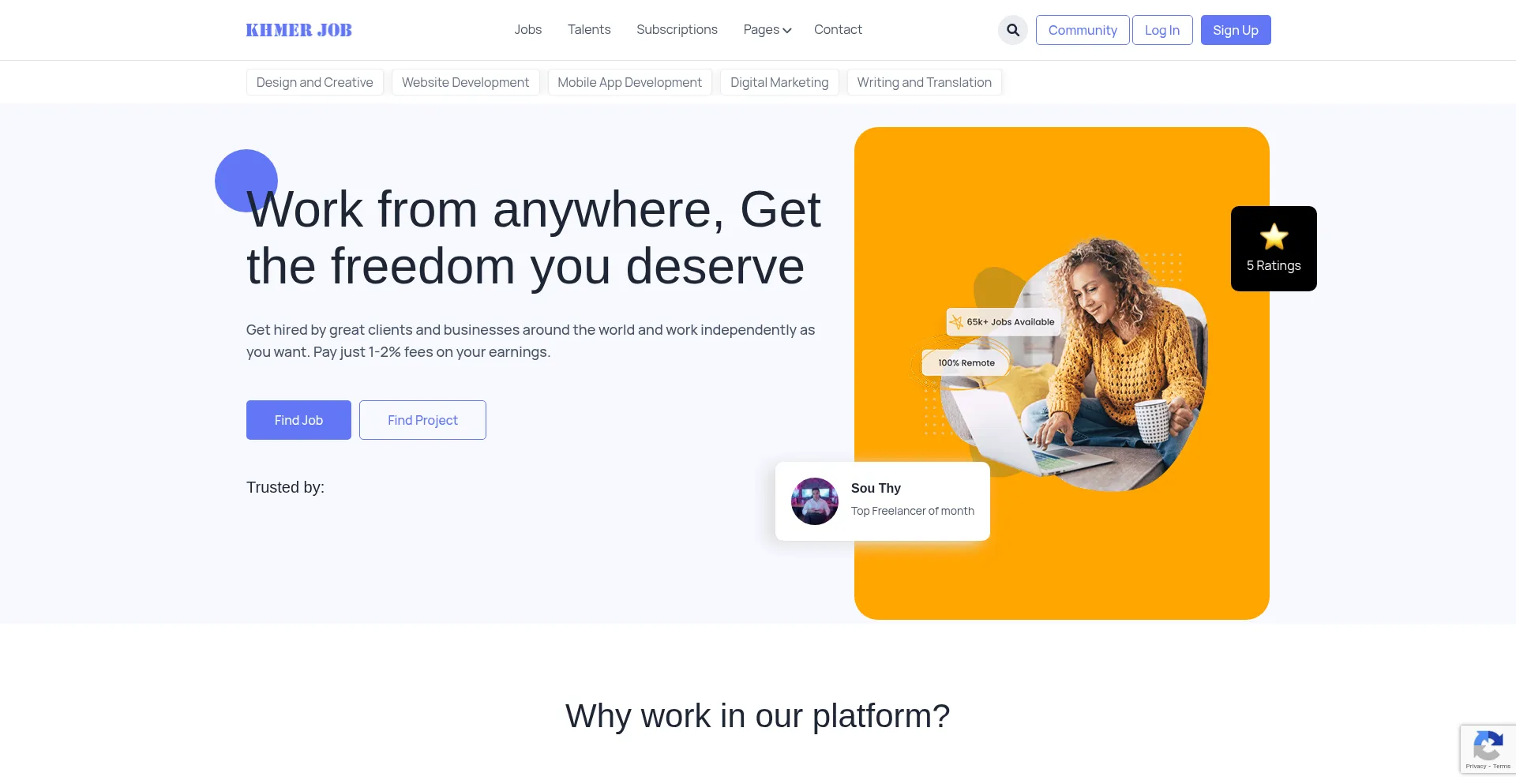 khmerjob.com 使用 Bootstrap,这是一个广泛采用的开源响应式网页开发框架。Bootstrap 通过标准化组件和样式实现移动友好界面的高效创建。