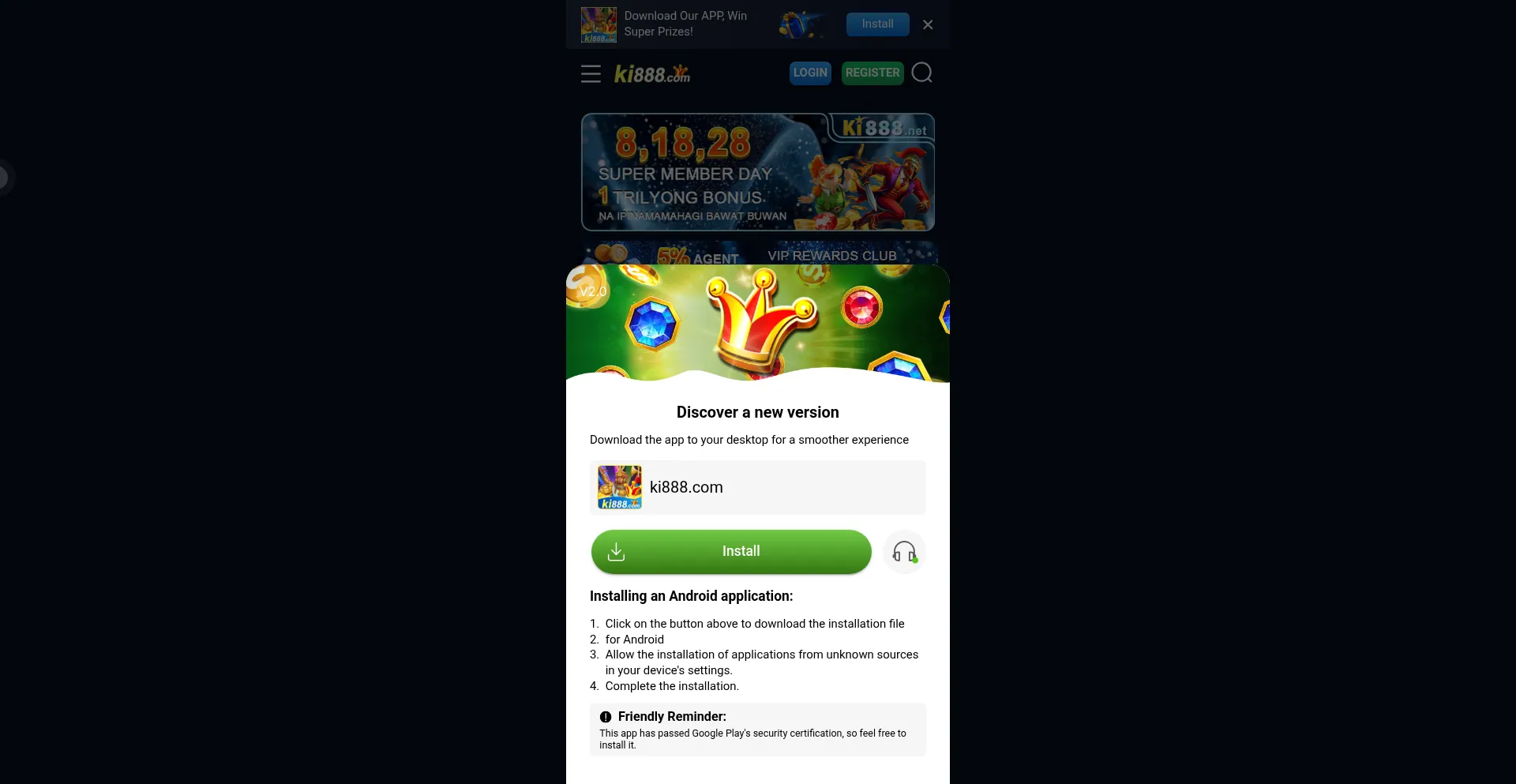 网站 ki888.club 被配置为一个带有移动应用功能的网络应用。用户可以直接将该网站安装到设备的桌面上,以快速访问并享受类似移动应用的体验。