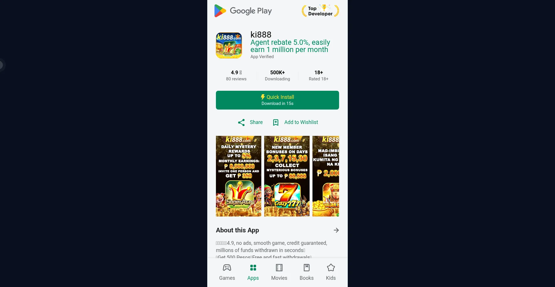 网站 ki888.com 被配置为一个带有移动应用功能的网络应用。用户可以直接将该网站安装到设备的桌面上,以快速访问并享受类似移动应用的体验。