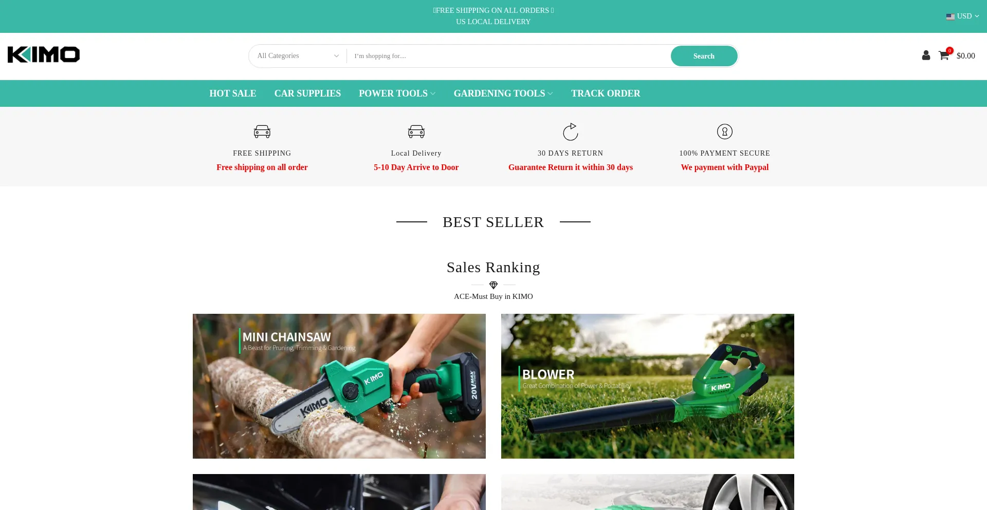 分析表明 kimopowertool.com 作为电子商务平台运营,促进商品或服务的在线交易。该网站实现了购物车功能、支付处理系统和产品目录功能,这些是商业零售运营的典型特征。