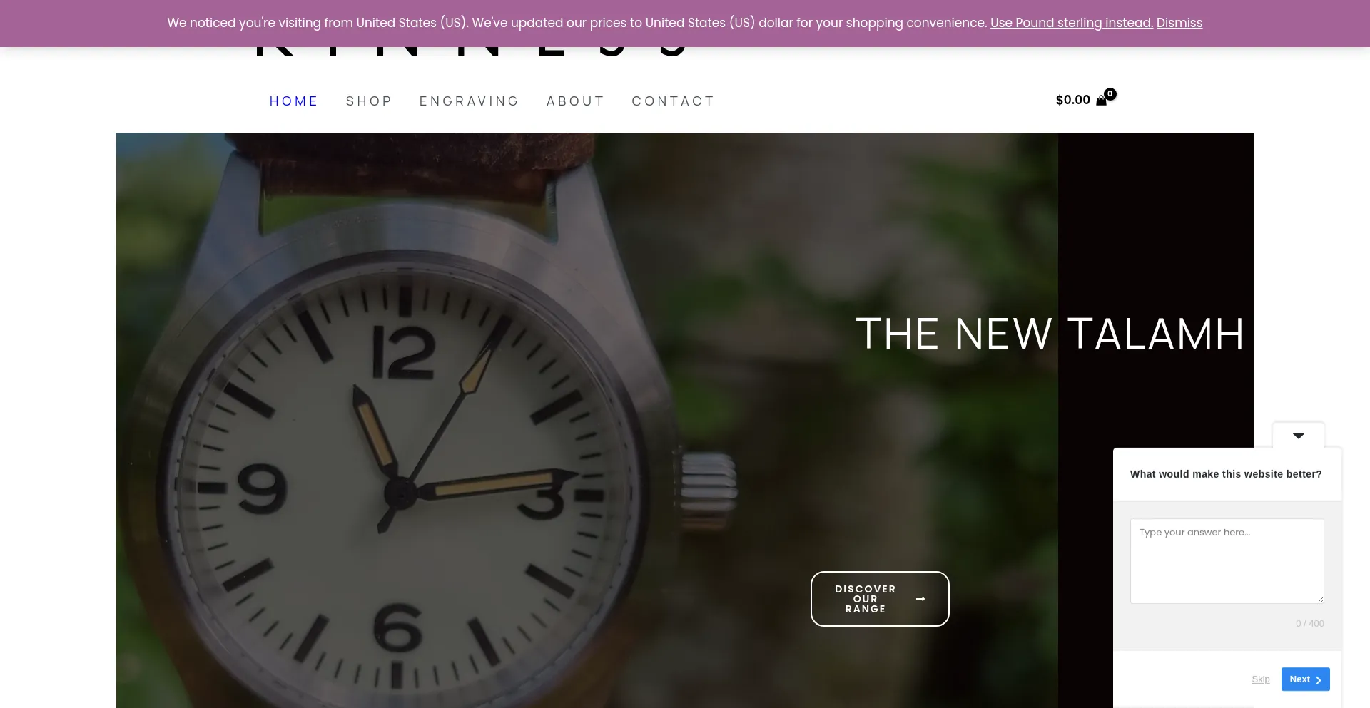 分析表明 kinnesswatches.com 作为电子商务平台运营,促进商品或服务的在线交易。该网站实现了购物车功能、支付处理系统和产品目录功能,这些是商业零售运营的典型特征。