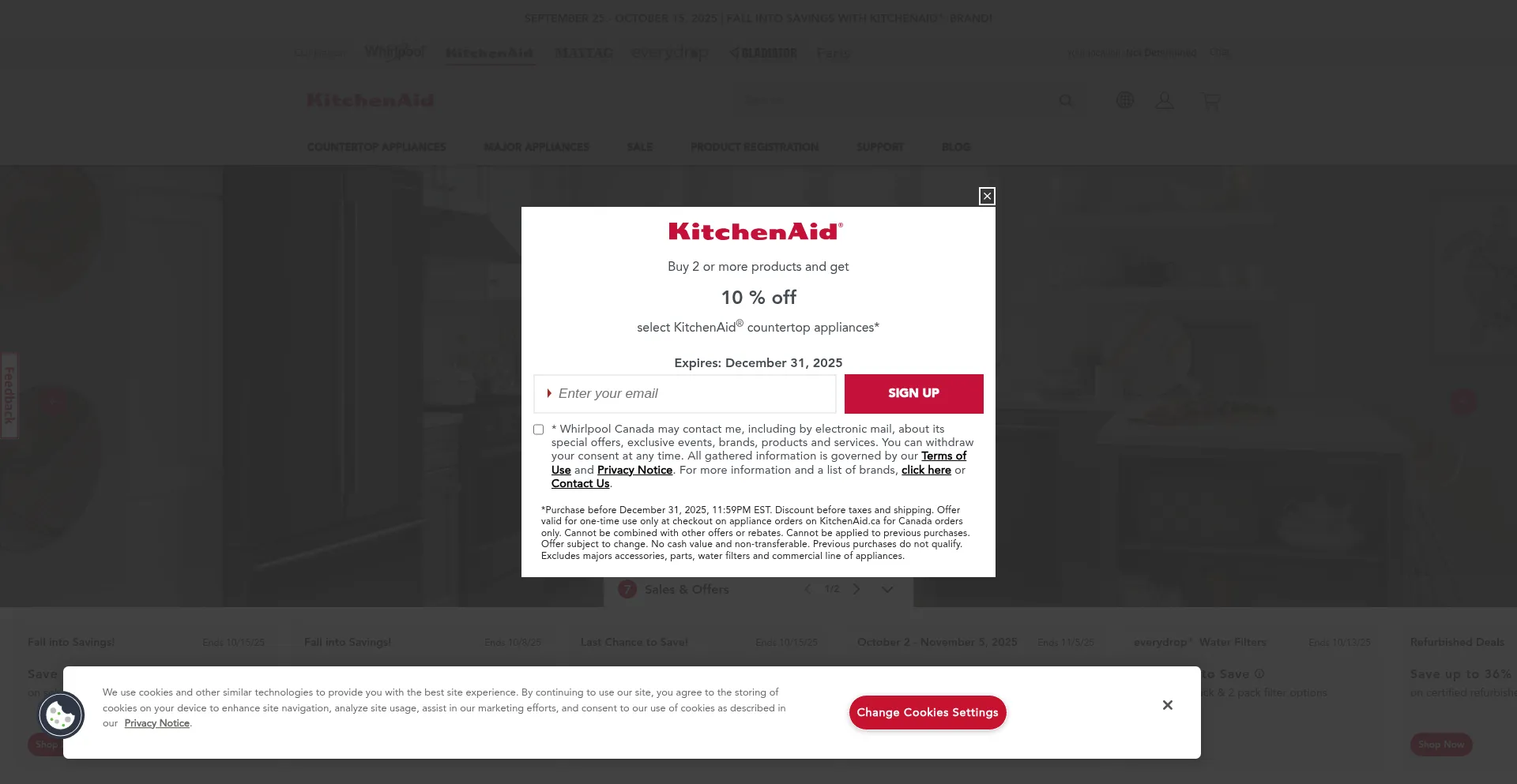 该网站实现数据收集表单,请求个人信息,包括姓名、电子邮件地址、电话号码或其他敏感详细信息。用户应验证 kitchenaid.ca 的合法性并在提交个人数据前查看隐私政策。
