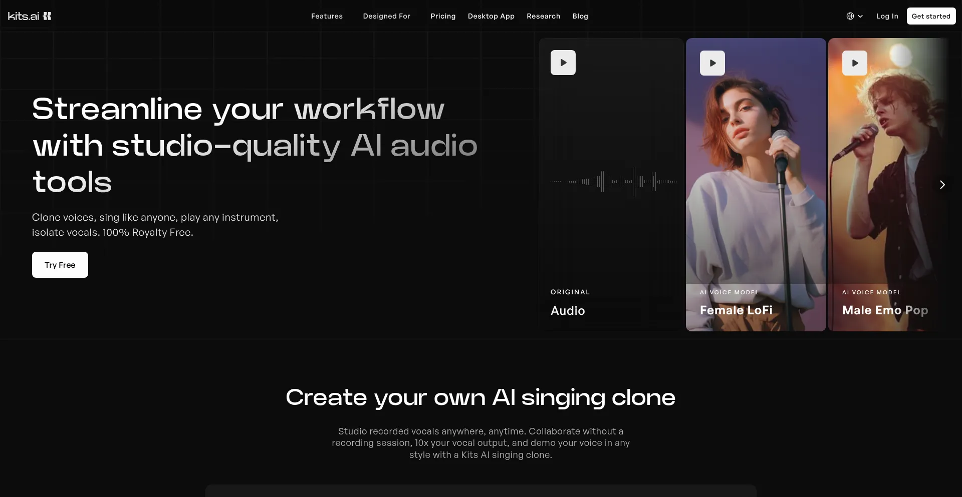 Kits streamlines and improves producer workflows with AI audio tools built for music. Clone AI voice generators. Sing like anyone. Play any instrument. 100% royalty-free.