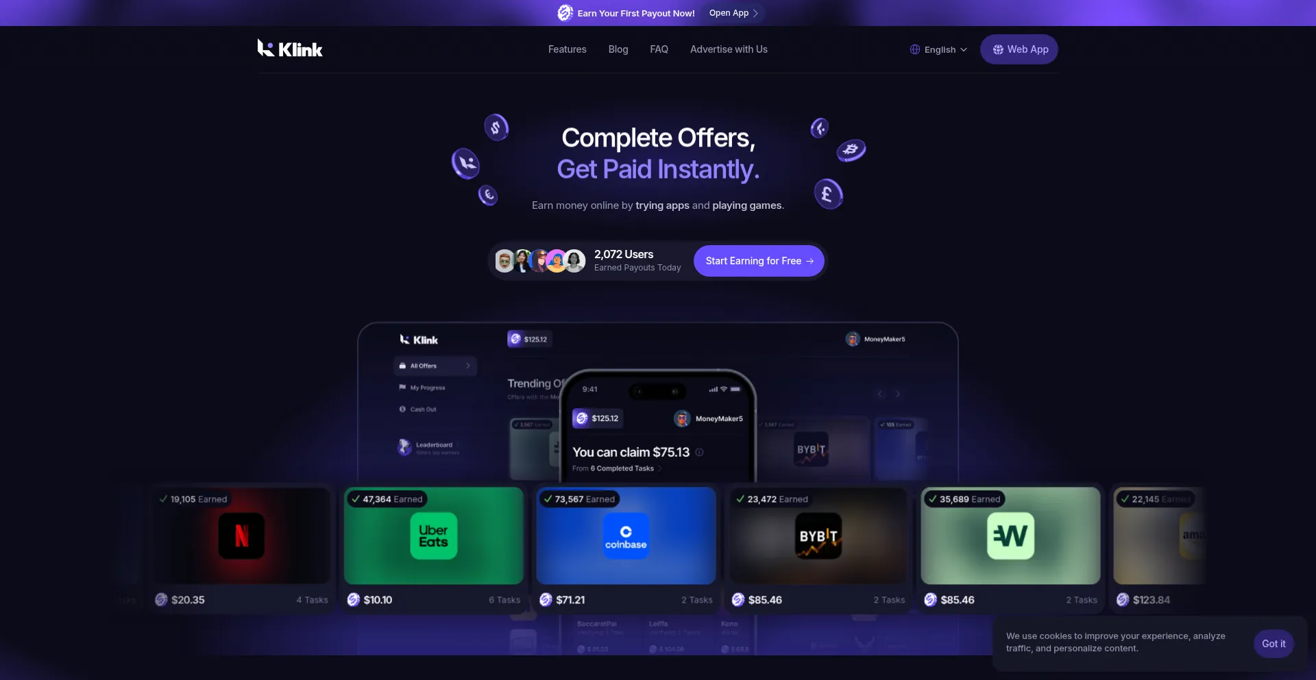 Make Money Online With Klink By Completing Games, Offers, And Social Tasks. Get Paid In Crypto Or Cash — Fast, Free, And Easy.