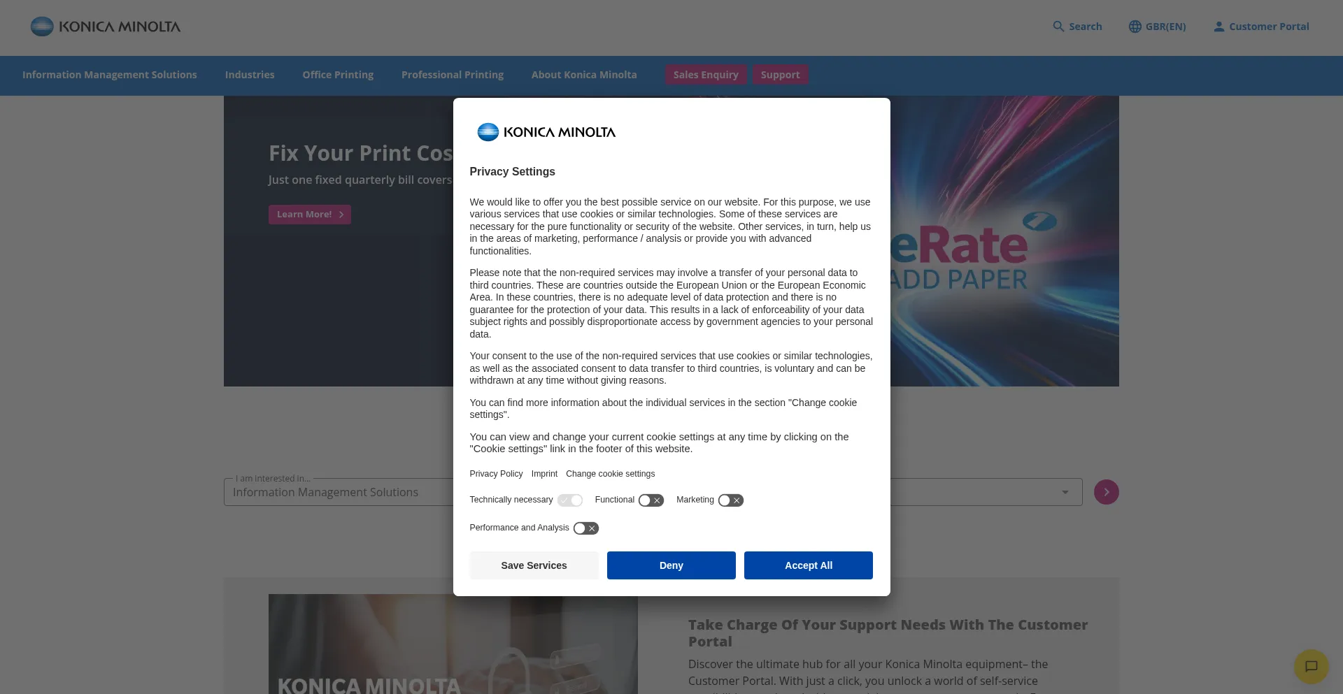 该网站实现符合GDPR或CCPA等隐私法规的cookie同意机制。这表明 konicaminolta.co.uk 遵守数据保护标准并为用户提供对个人数据收集实践的控制。