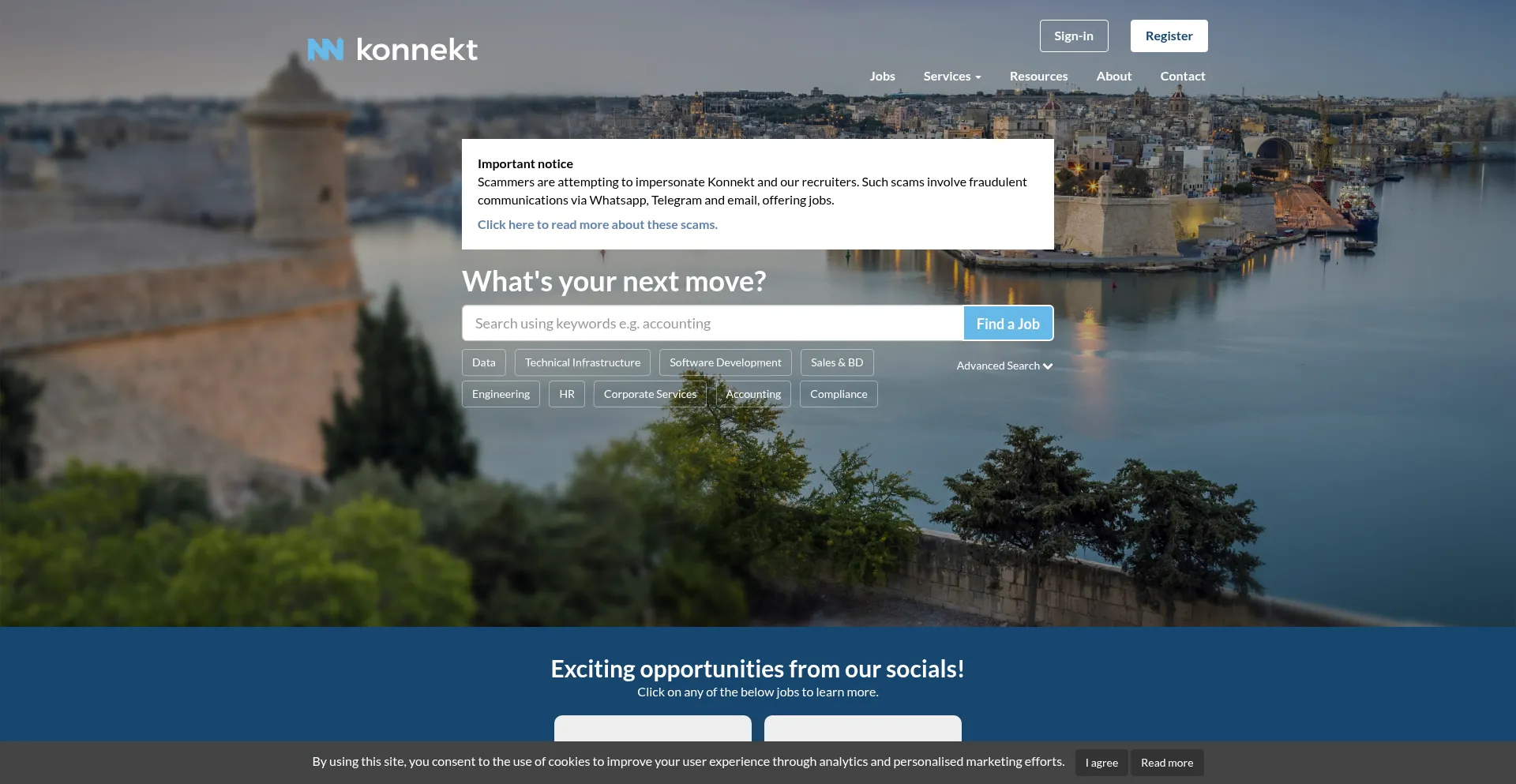 网站上存在社交媒体链接表明 konnekt.com 在社交媒体上维护官方账户,这是可信度和参与度的积极信号。