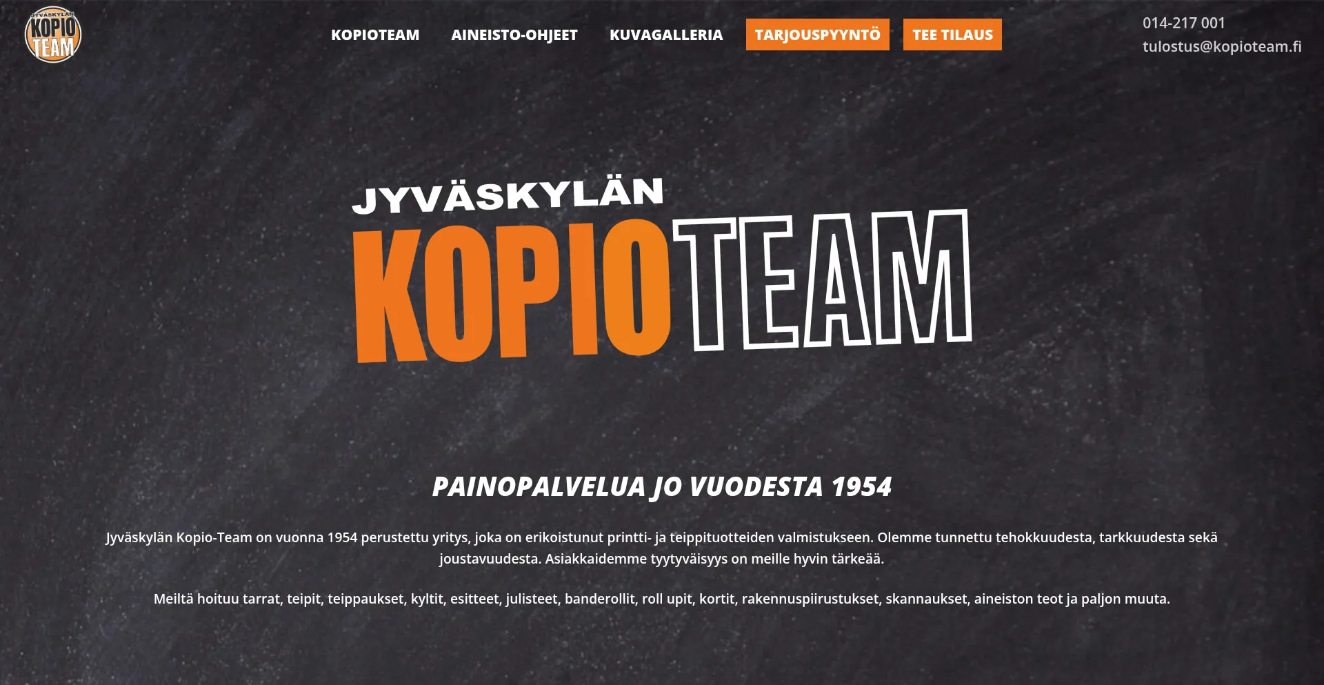 Jyväskylän Kopio-Team on vuonna 1954 perustettu yritys, joka on erikoistunut printti- ja teippituotteiden valmistukseen.