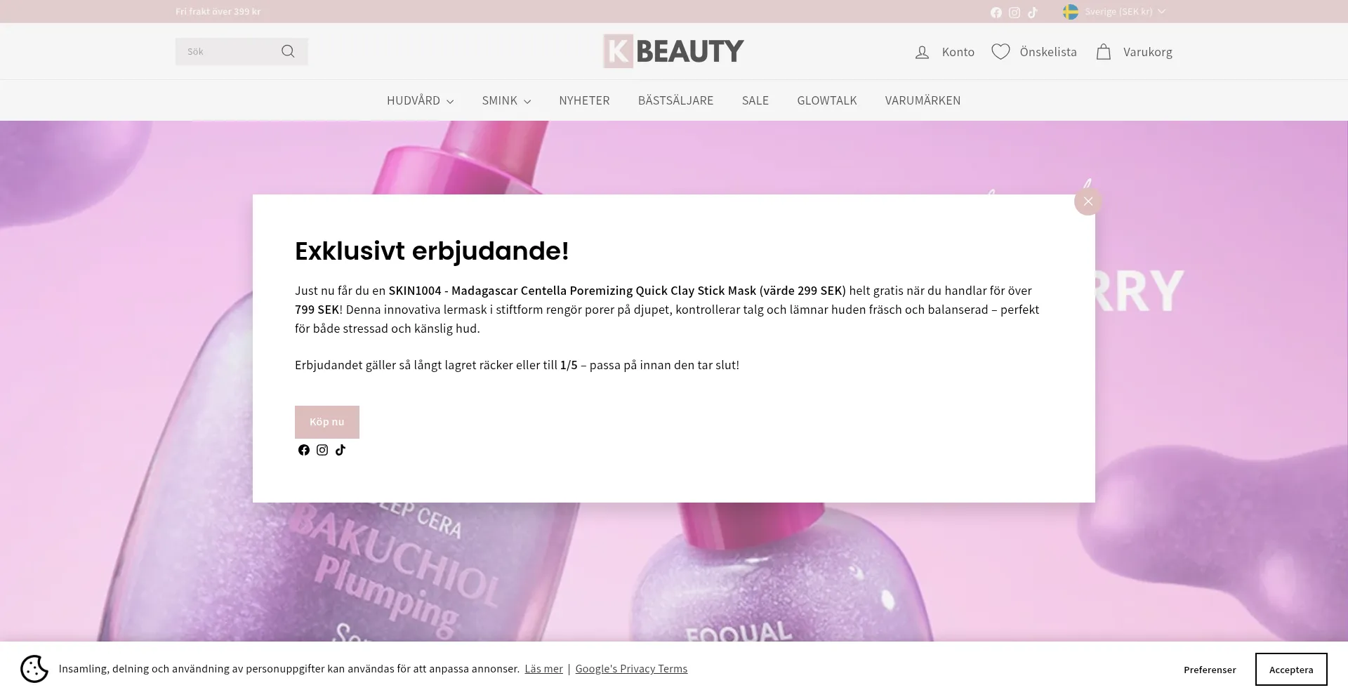 该网站实现符合GDPR或CCPA等隐私法规的cookie同意机制。这表明 koreanbeauty.se 遵守数据保护标准并为用户提供对个人数据收集实践的控制。