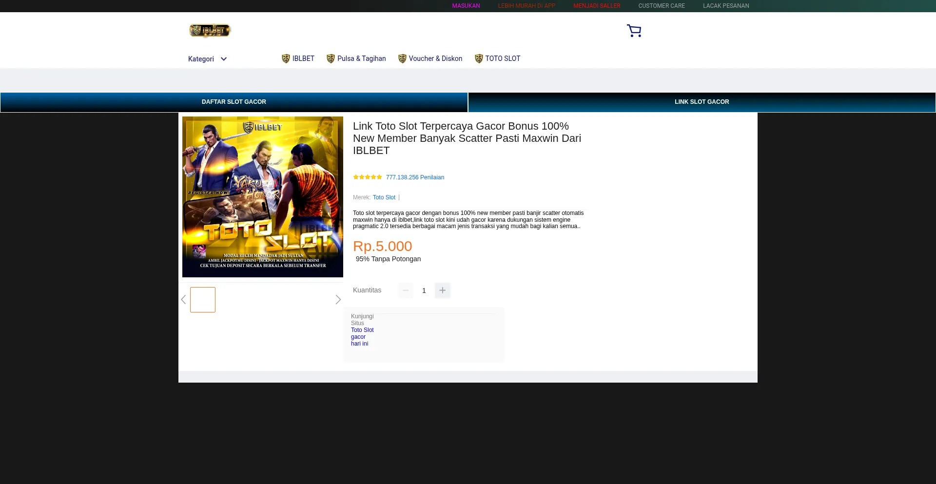Toto slot terpercaya gacor dengan bonus 100% new member pasti banjir scatter otomatis maxwin hanya di iblbet,link toto slot kini udah gacor karena dukungan sistem engine pragmat...