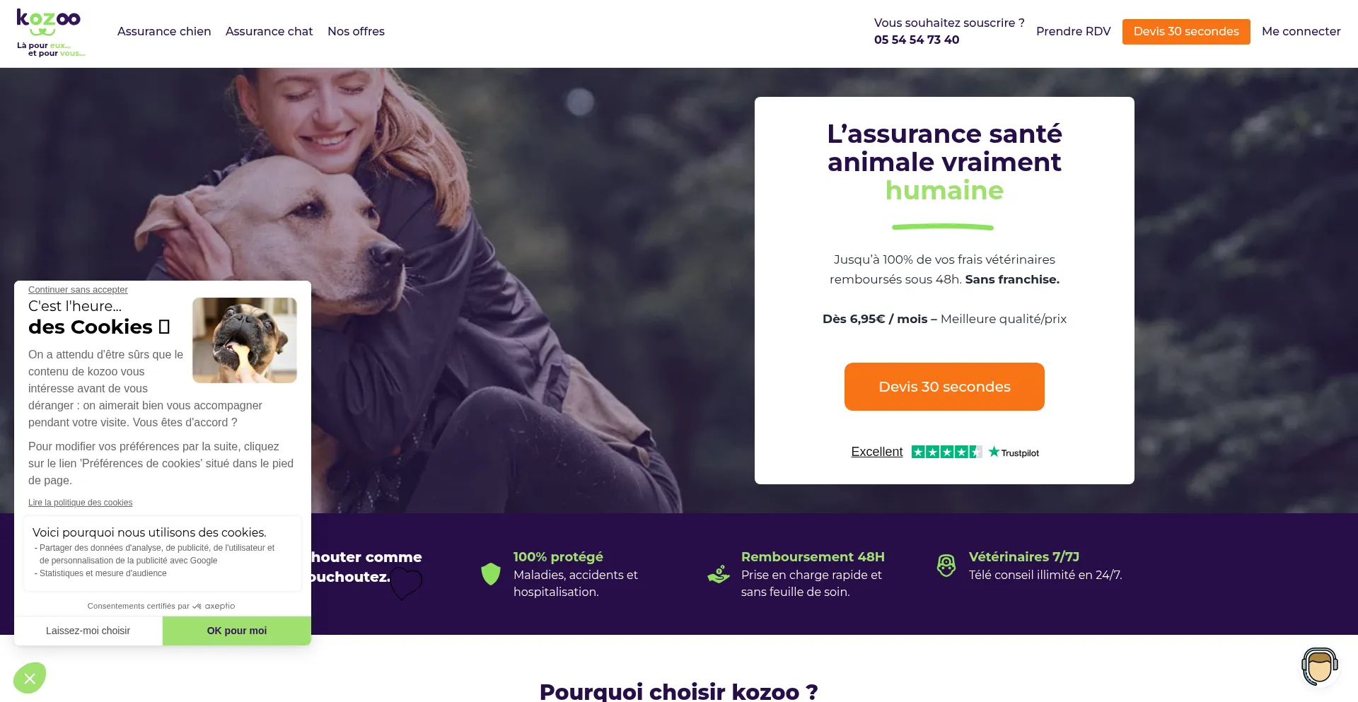 Découvrez l'assurance santé animale en ligne avec kozoo, une mutuelle pour animaux qui rembourse les frais vétérinaires en 48h !
