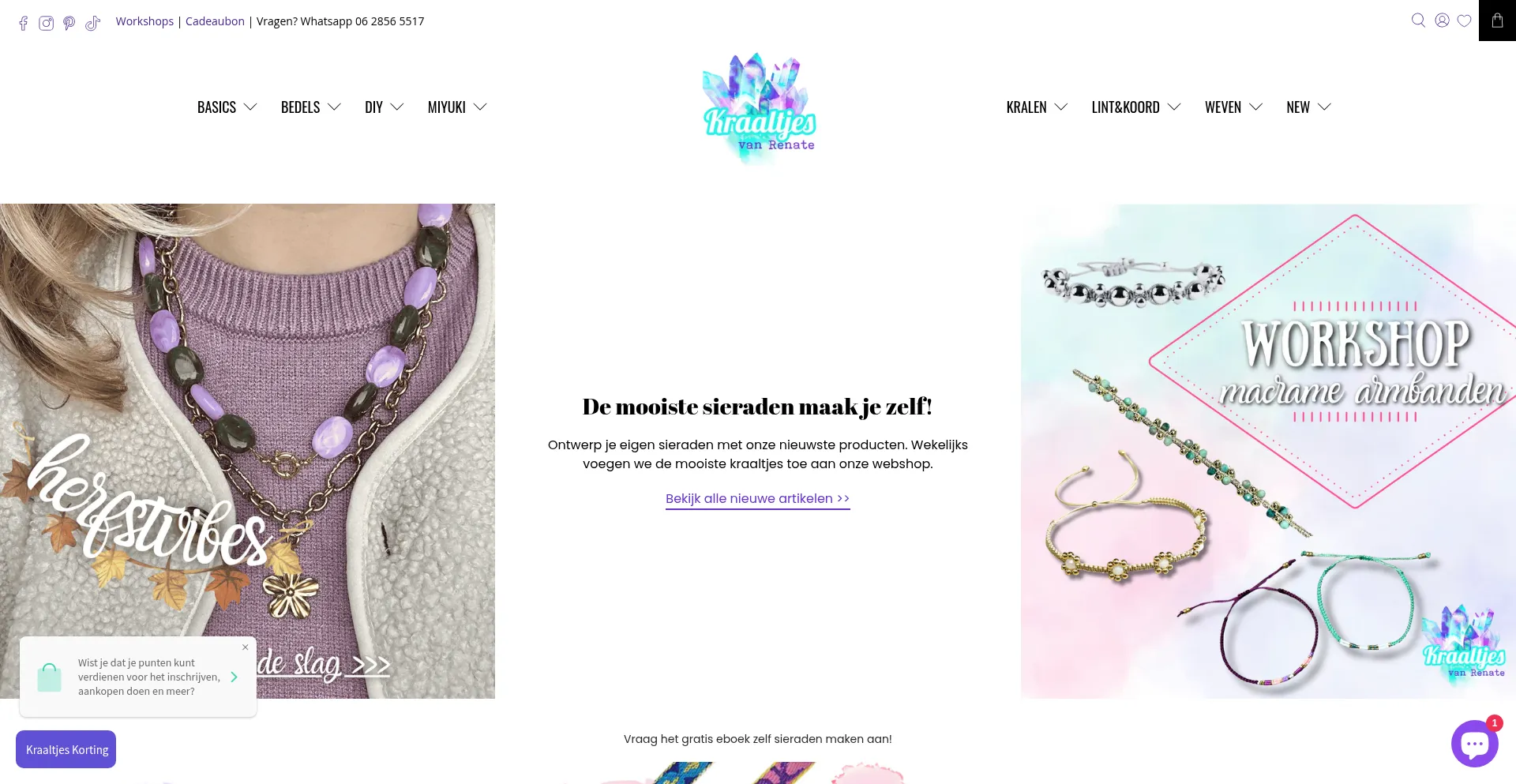 Bij Kraaltjes van Renate vind je alle materialen om zelf de mooiste sieraden te maken. Glaskralen, rijgdraad, bedels, stainless steel, kettingen, rocailles, miyuki kralen, schak...