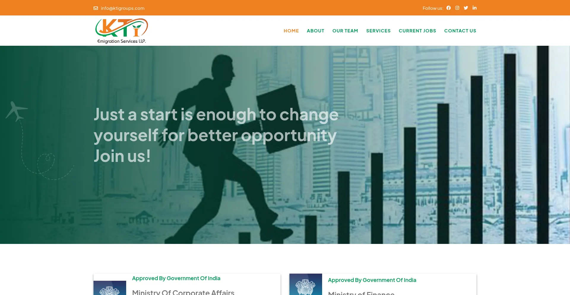 ktiemigration.com 使用 Bootstrap,这是一个广泛采用的开源响应式网页开发框架。Bootstrap 通过标准化组件和样式实现移动友好界面的高效创建。