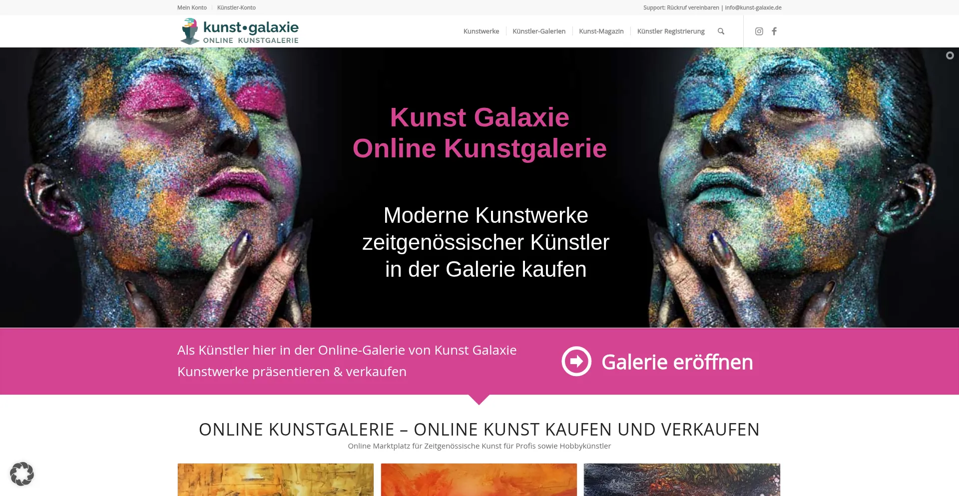 网站上存在社交媒体链接表明 kunst-galaxie.de 在社交媒体上维护官方账户,这是可信度和参与度的积极信号。