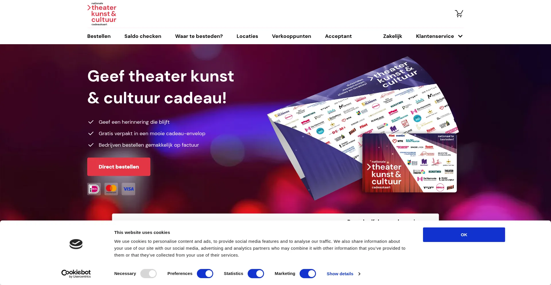 Bestel de Theater, Kunst & Cultuur Cadeaukaart voor 17:00 uur en deze wordt dezelfde dag verstuurd! Te besteden aan uitjes en cultuur door heel Nederland.