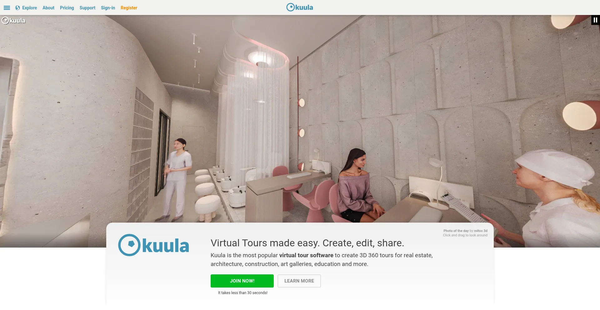 网站上存在社交媒体链接表明 kuula.co 在社交媒体上维护官方账户,这是可信度和参与度的积极信号。