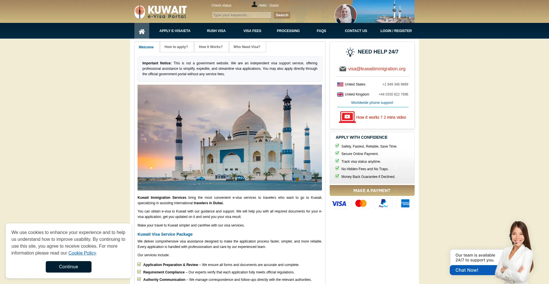 Kuwait immigration service brings the most convenient e-visa services to travelers who want to go to Kuwait. You can obtain an e-visa to Kuwait at our website