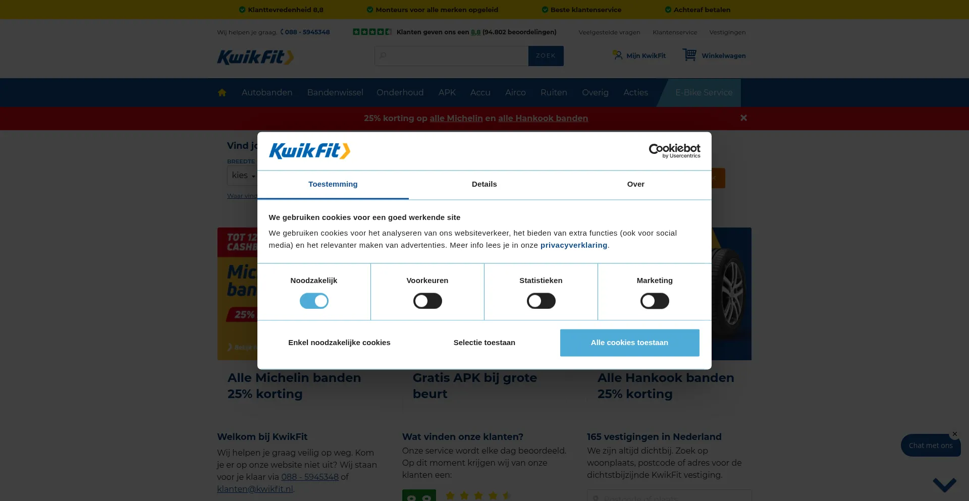该网站实现符合GDPR或CCPA等隐私法规的cookie同意机制。这表明 kwik-fit.nl 遵守数据保护标准并为用户提供对个人数据收集实践的控制。