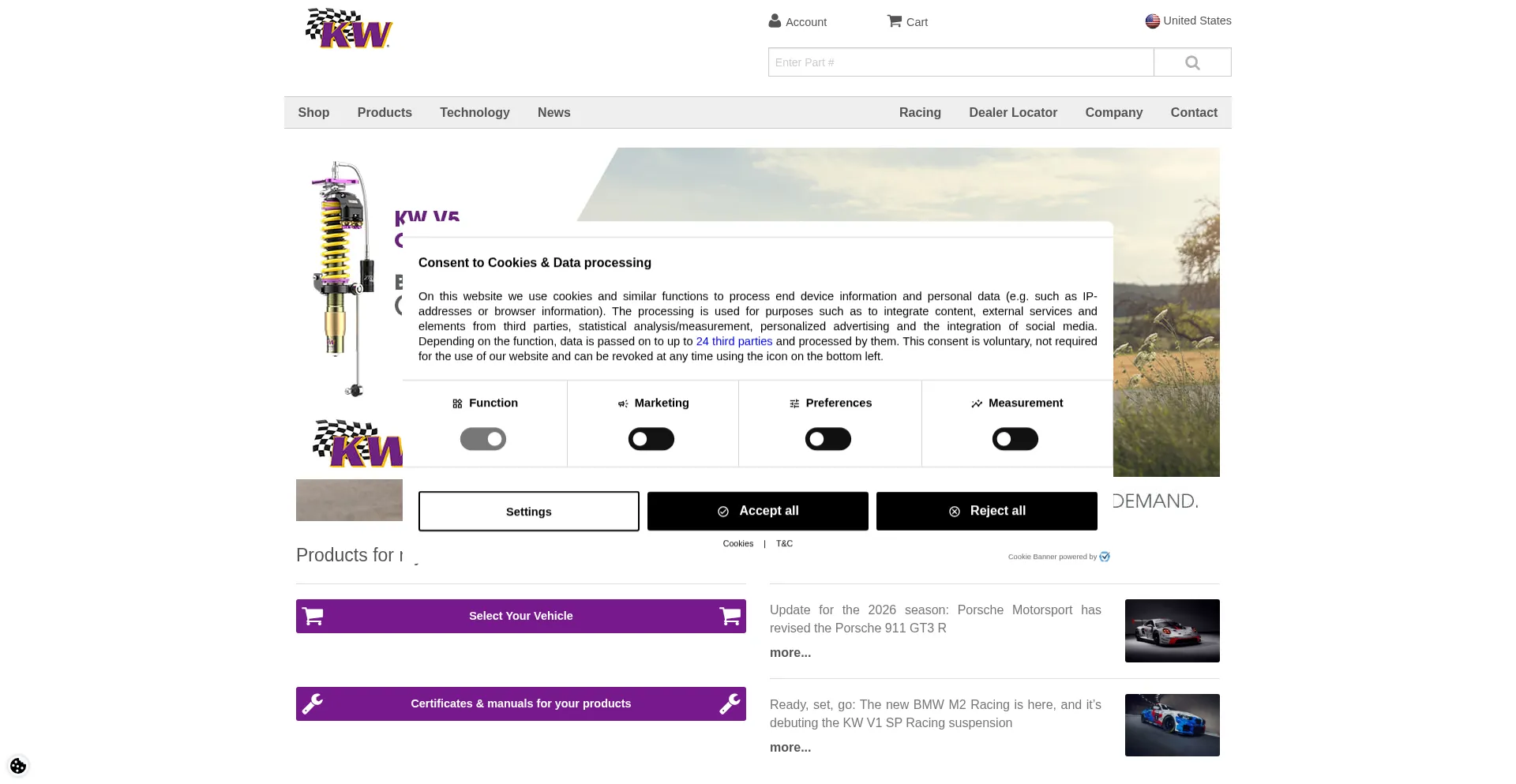 The perfect product for every demand: KW coilovers, KW Competition racing suspensions, KW height adjustable spring kit, etc.