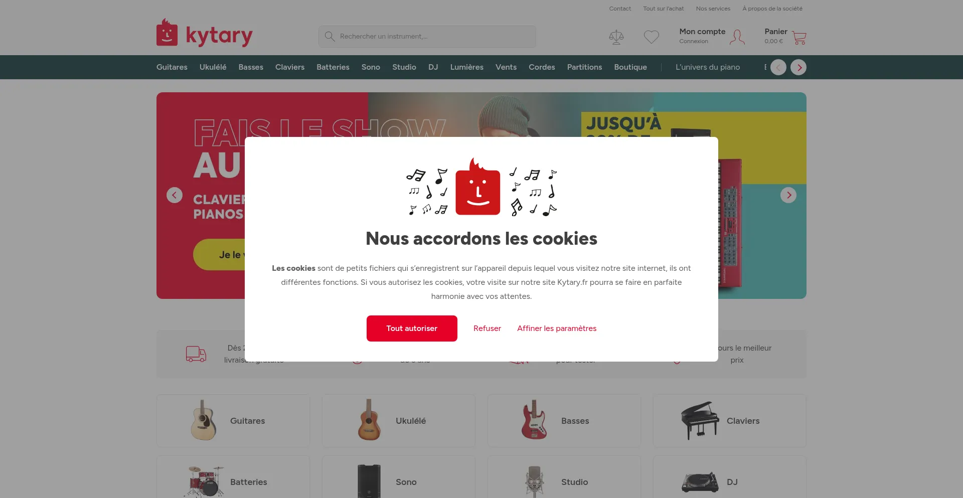 该网站实现数据收集表单,请求个人信息,包括姓名、电子邮件地址、电话号码或其他敏感详细信息。用户应验证 kytary.fr 的合法性并在提交个人数据前查看隐私政策。
