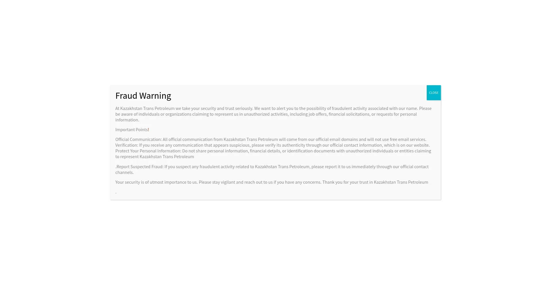 帮助保护他人,快在社交媒体上分享此页面吧!知道kztranspetroleum.com的人越多,骗子就越难得逞。 通过在社交媒体上分享此页面,帮助更多人发现可靠的kztranspetroleum.com吧!