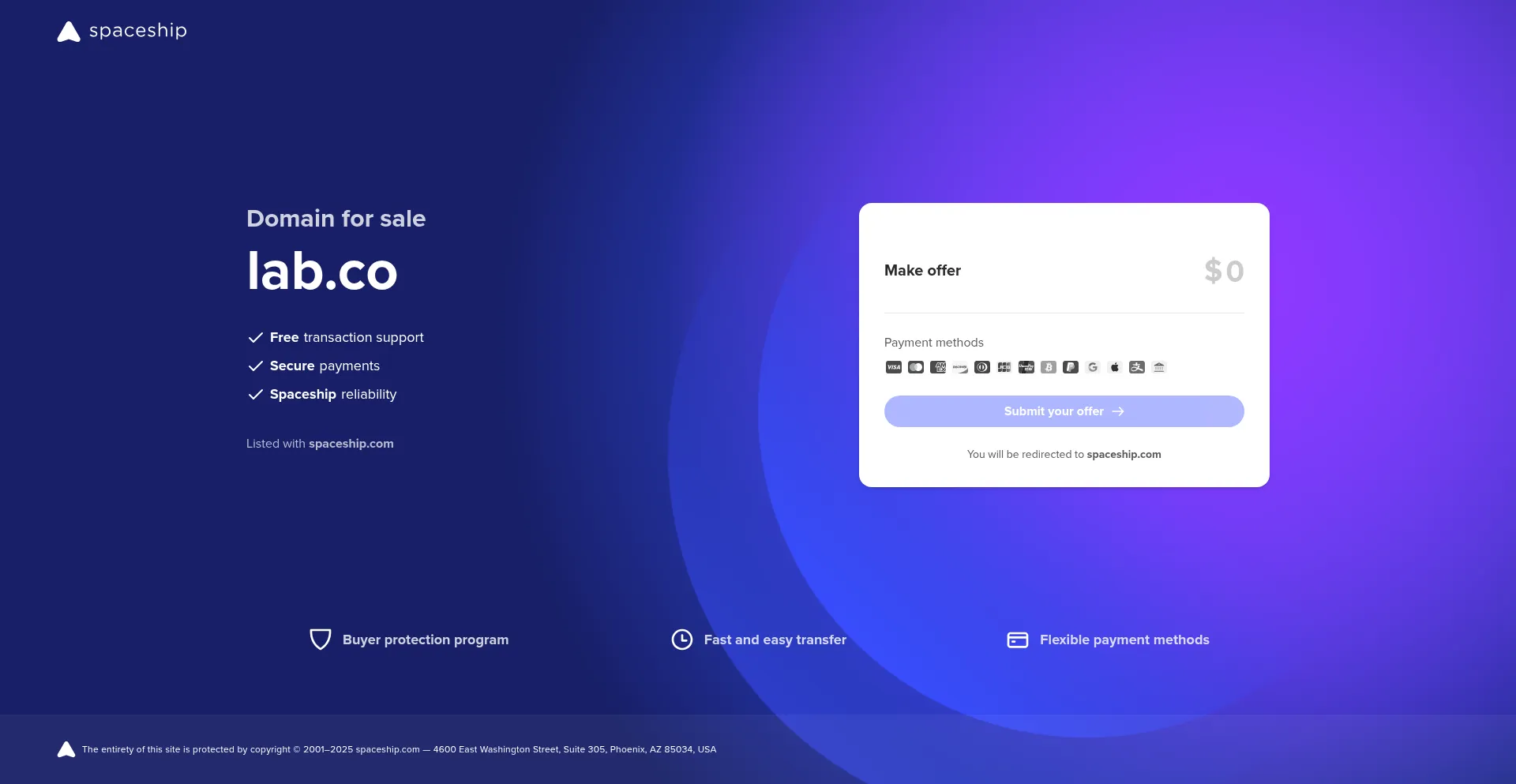 该域名在延长期间保持活跃状态,表明运营稳定性和已建立的网络存在。lab.co 的这种长寿性表明合法的商业运营和随时间推移的持续用户参与。