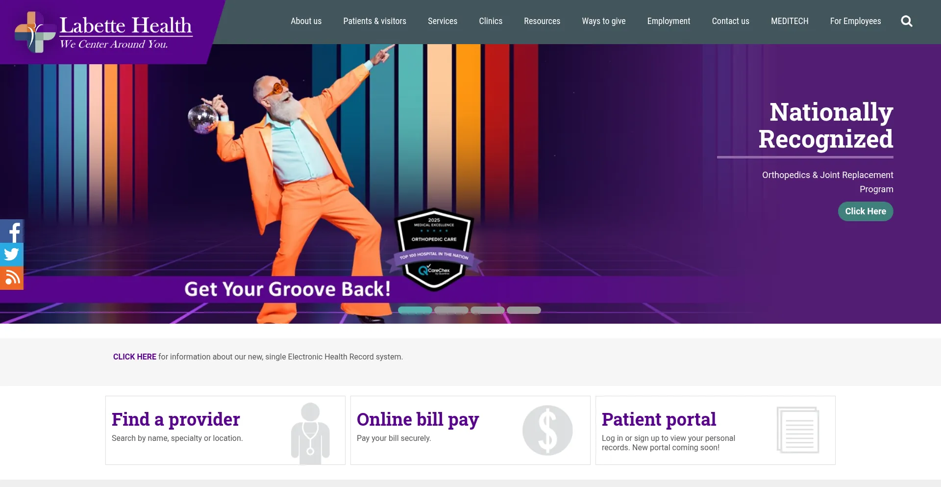 网站上存在社交媒体链接表明 labettehealth.com 在社交媒体上维护官方账户,这是可信度和参与度的积极信号。