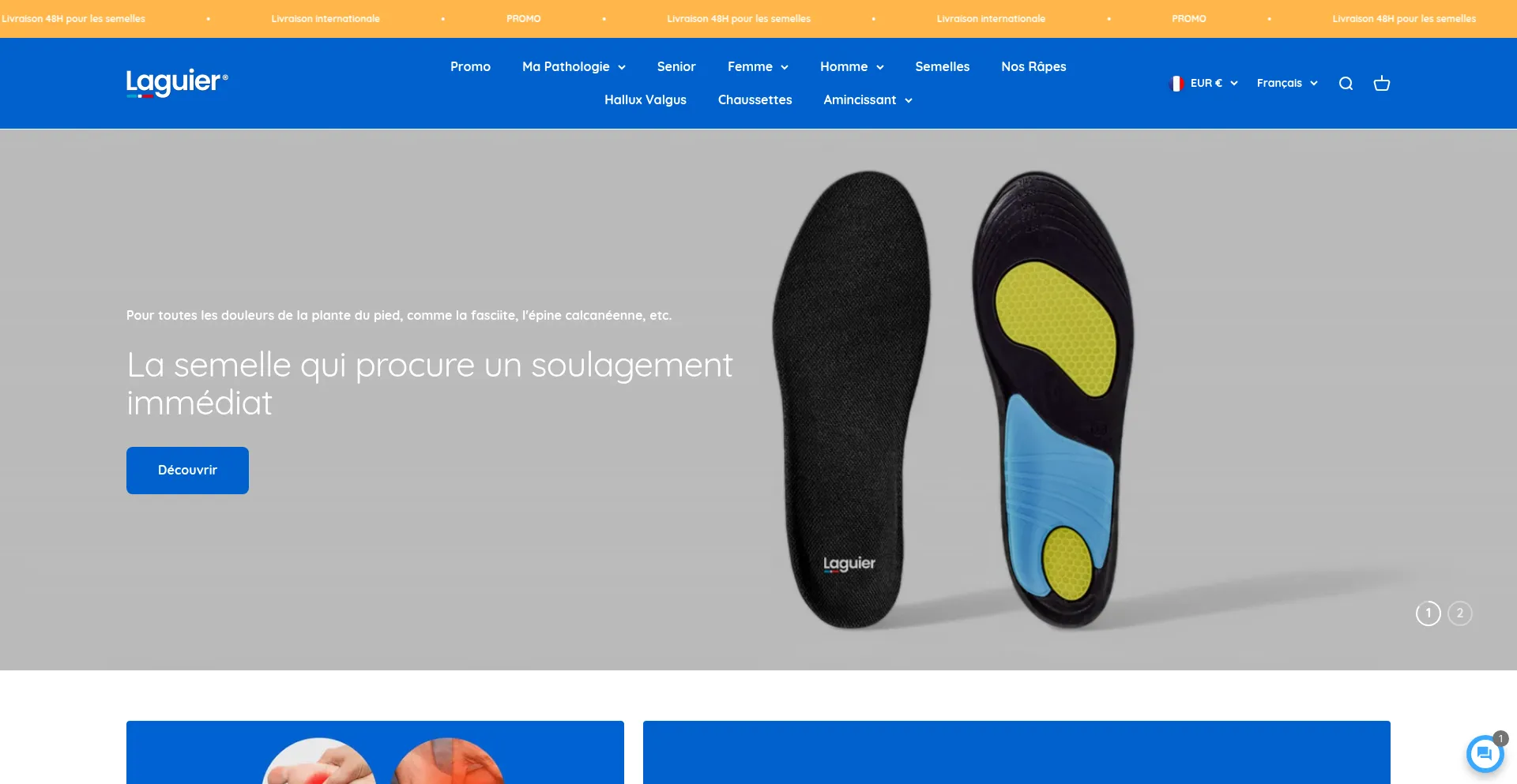 Laguier propose une large gamme de produits de qualité contre la douleur. Des semelles orthopédiques pour l'aponévrosite, aux coussinets pour fasciite plantaire, en passant p...