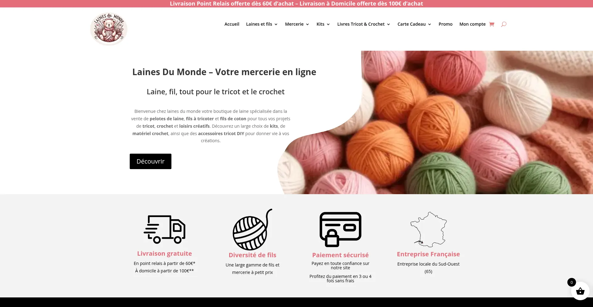 Laines Du Monde : boutique de laine et mercerie en ligne. Pelotes, fils à tricoter, coton, kits crochet, tricot et accessoires DIY.