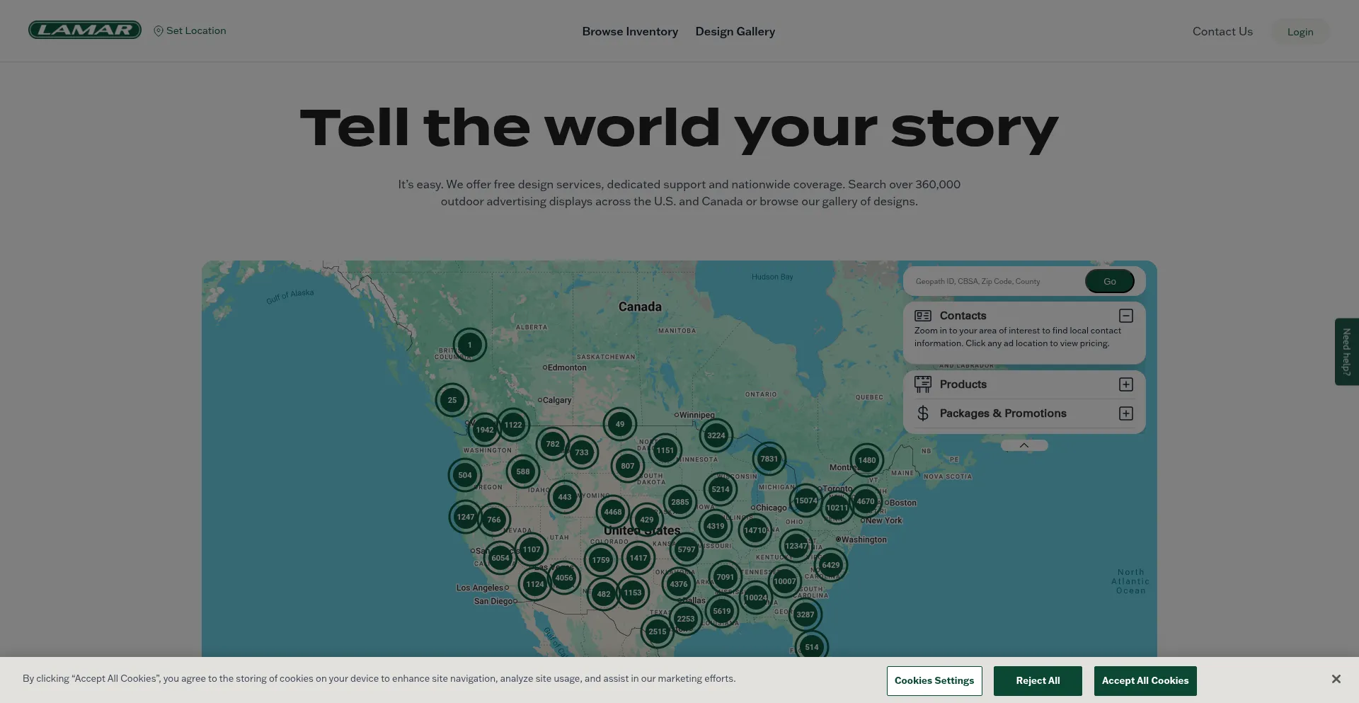 该网站实现符合GDPR或CCPA等隐私法规的cookie同意机制。这表明 lamar.com 遵守数据保护标准并为用户提供对个人数据收集实践的控制。