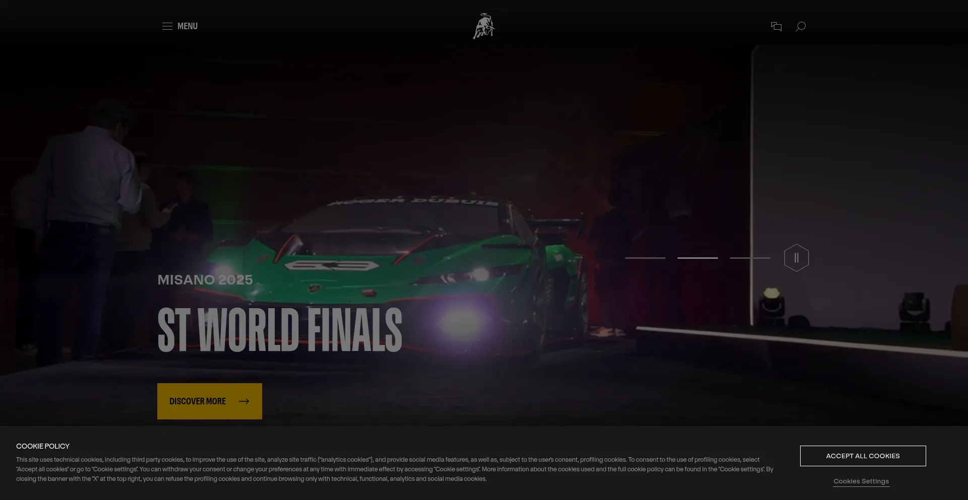 该网站实现符合GDPR或CCPA等隐私法规的cookie同意机制。这表明 lamborghini.com 遵守数据保护标准并为用户提供对个人数据收集实践的控制。
