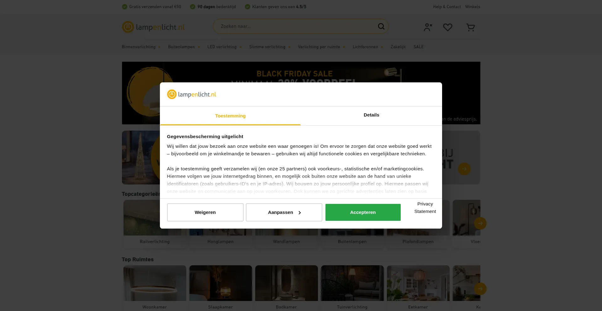 该网站实现符合GDPR或CCPA等隐私法规的cookie同意机制。这表明 lampenlicht.nl 遵守数据保护标准并为用户提供对个人数据收集实践的控制。