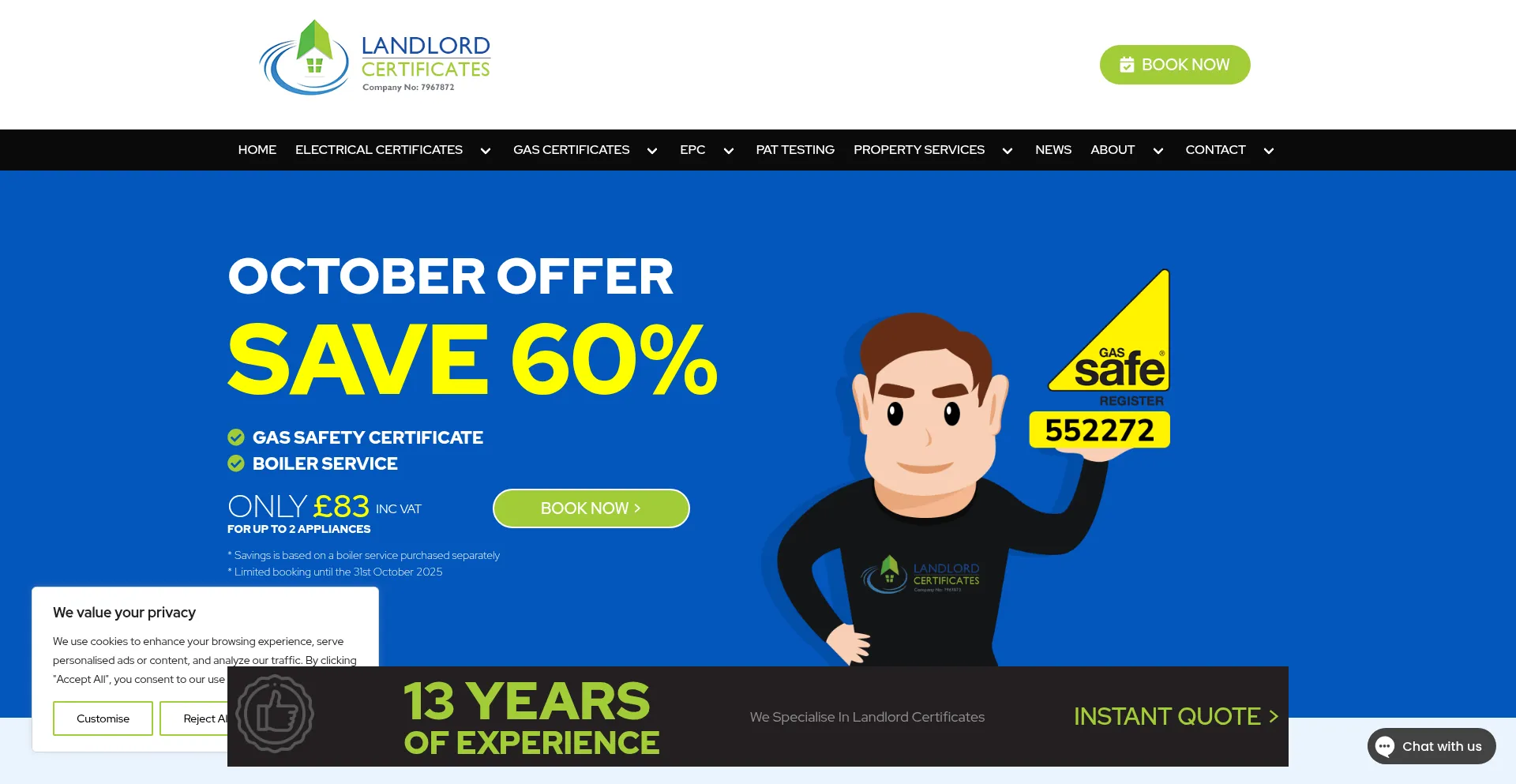 Fast, quality service at a low price. Electrical Certificate £70, Gas Certificate from £35, EPC £50 and PAT Testing £55. All prices include VAT