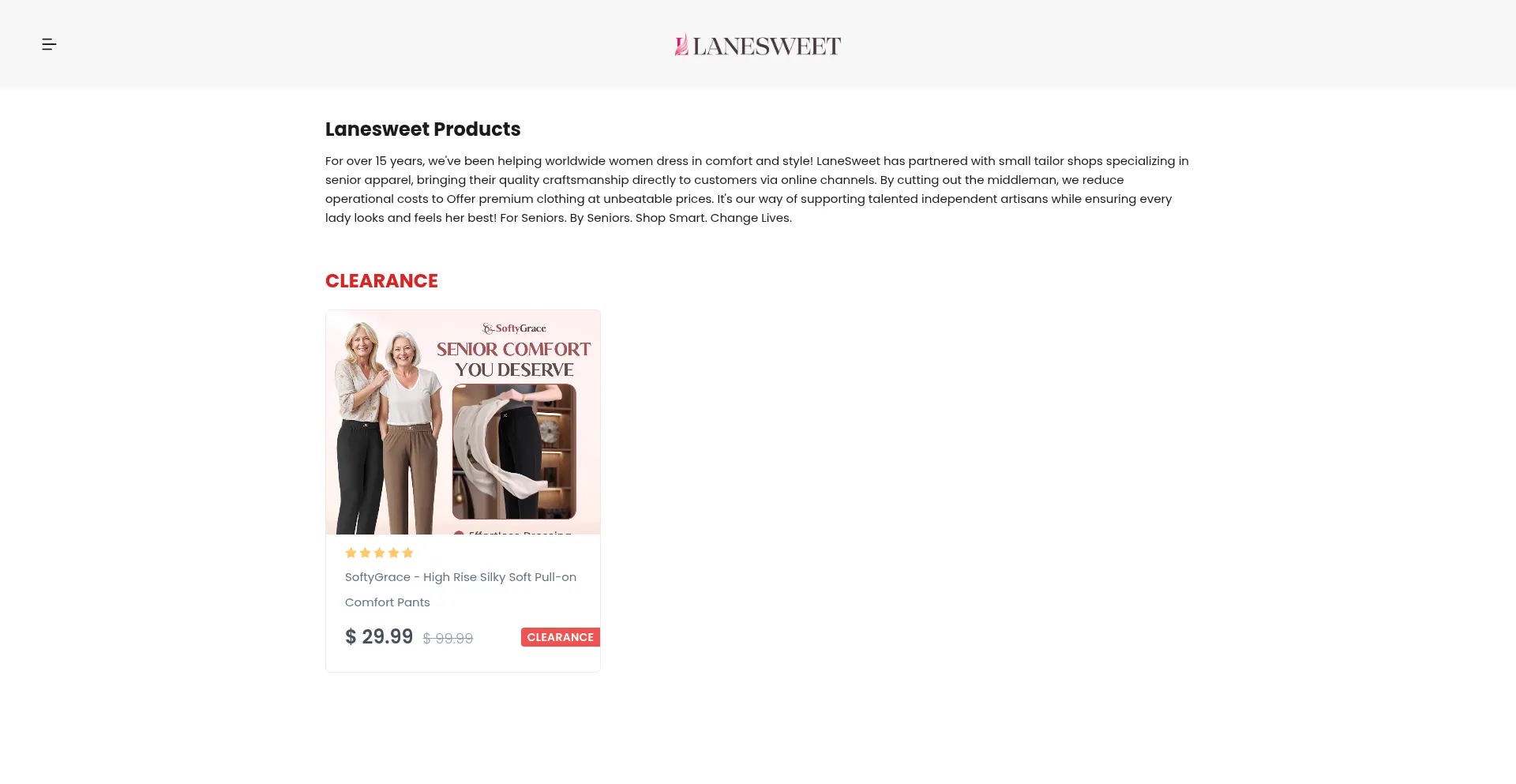 For over 15 years, we've been helping worldwide women dress in comfort and style! LaneSweet has partnered with small tailor shops specializing in senior apparel, bringing their ...