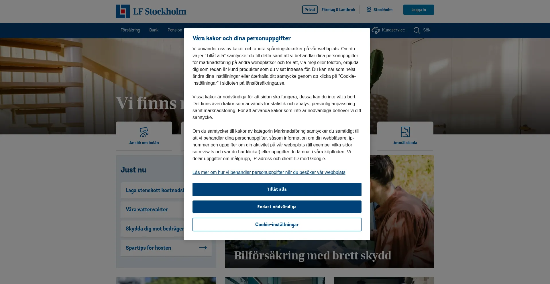 该网站实现符合GDPR或CCPA等隐私法规的cookie同意机制。这表明 lansforsakringar.se 遵守数据保护标准并为用户提供对个人数据收集实践的控制。