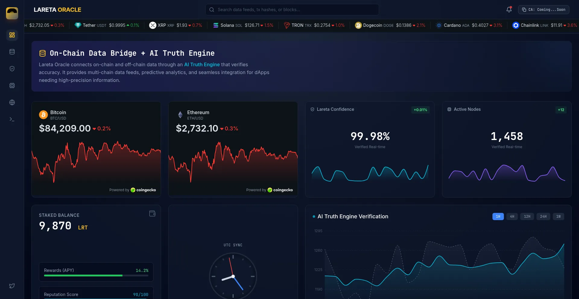 Lareta Oracle connects on-chain and off-chain data through an AI Truth Engine that verifies accuracy.